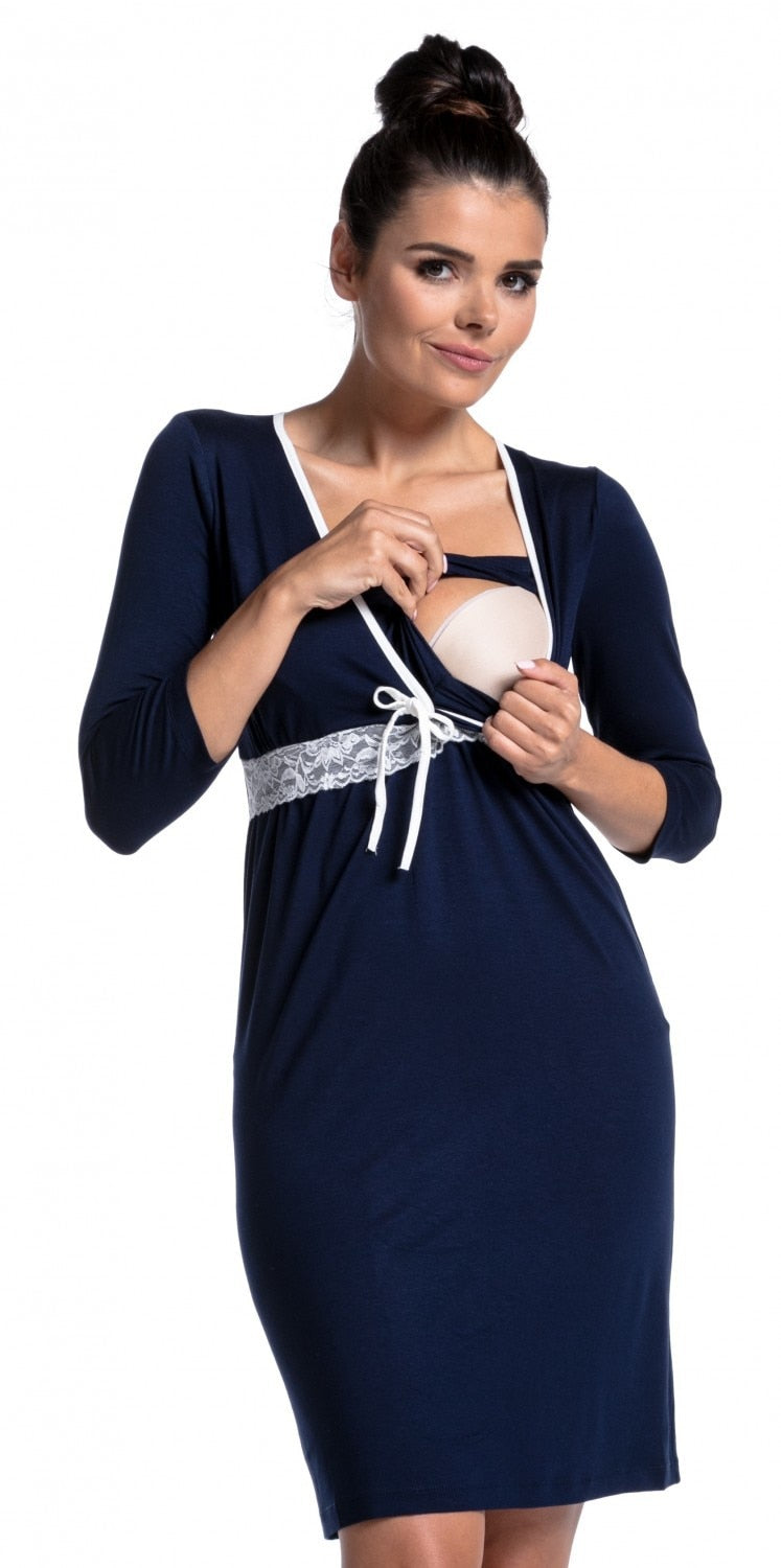 Maternity Lace Deep V-neck Breastfeeding Dress Pregnant Women Nursing Dress Pajamas Maternity Fashhion Sleepwear Nightgown