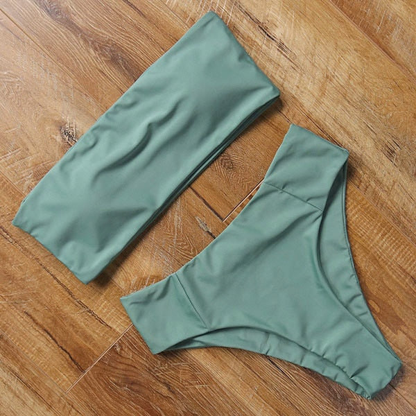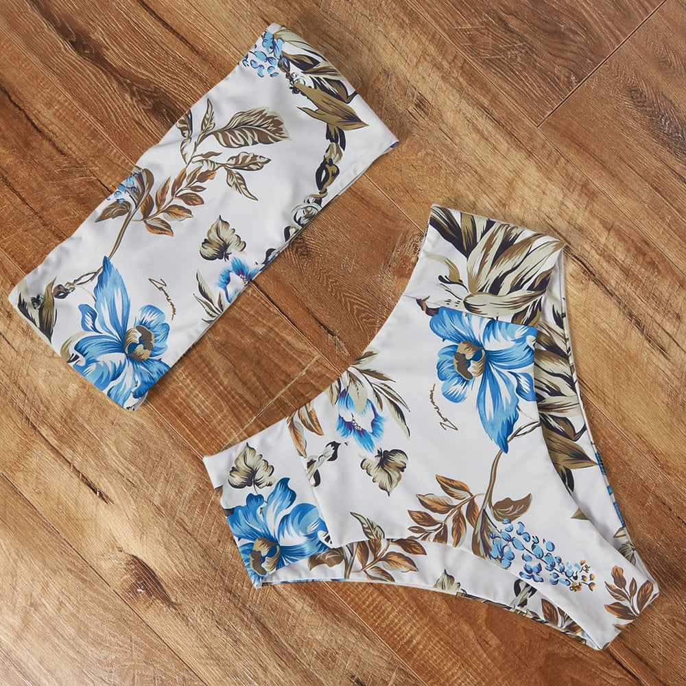 Leopard Bikini High Waist Swimsuit Women Bikini 2022 Push Up Bandeau Women Off Shoulder Beach Swimming Suit Brazilian Swimwear