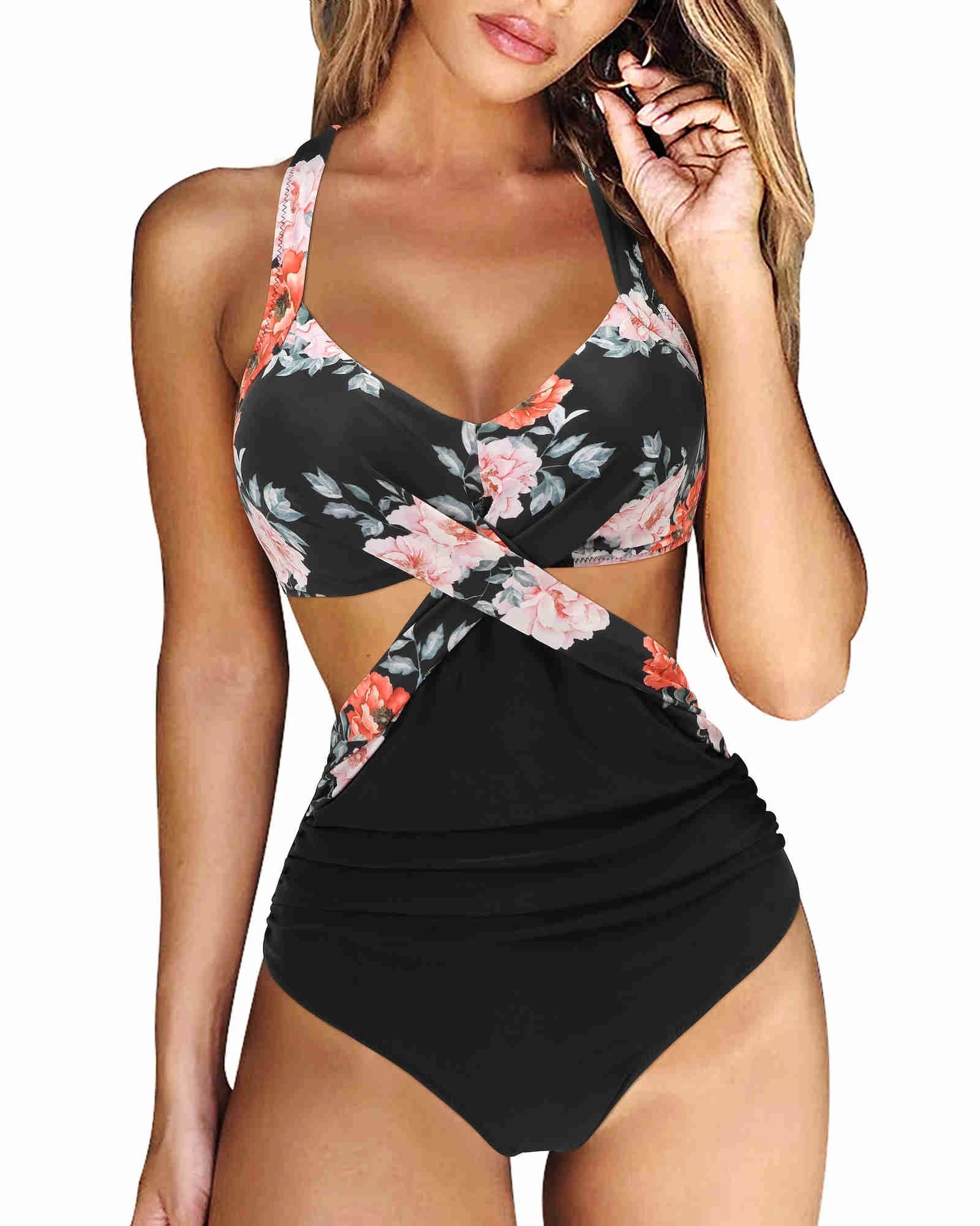 Featuring a contrast waistband and binding, this one-piece swimsuit will make you a shining star! It fits nice and snug so you can dive into the...