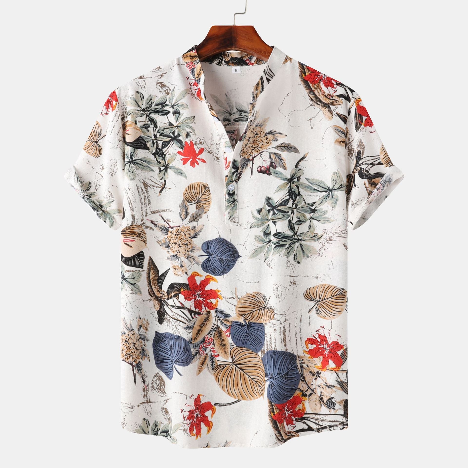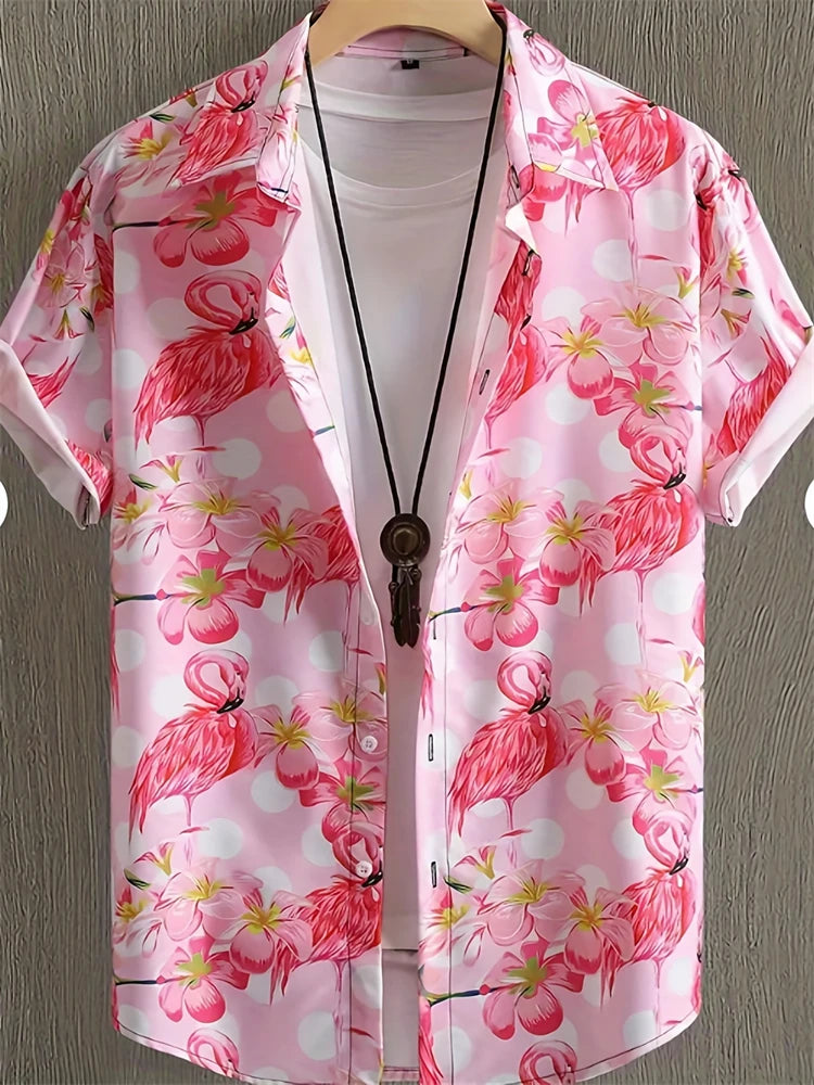 Summer fashion new printed shirt men's short sleeved shirt bird print street casual men's oversized top