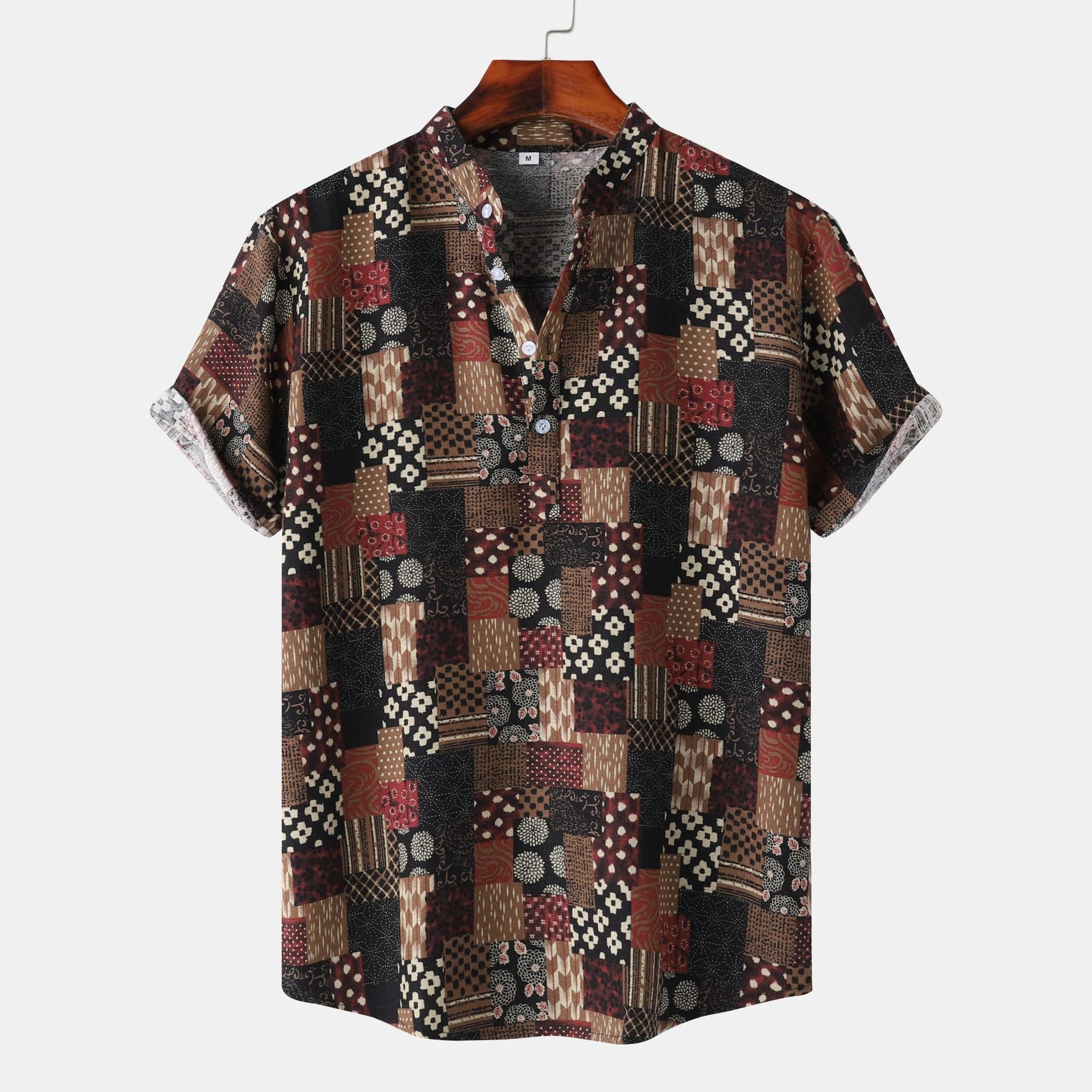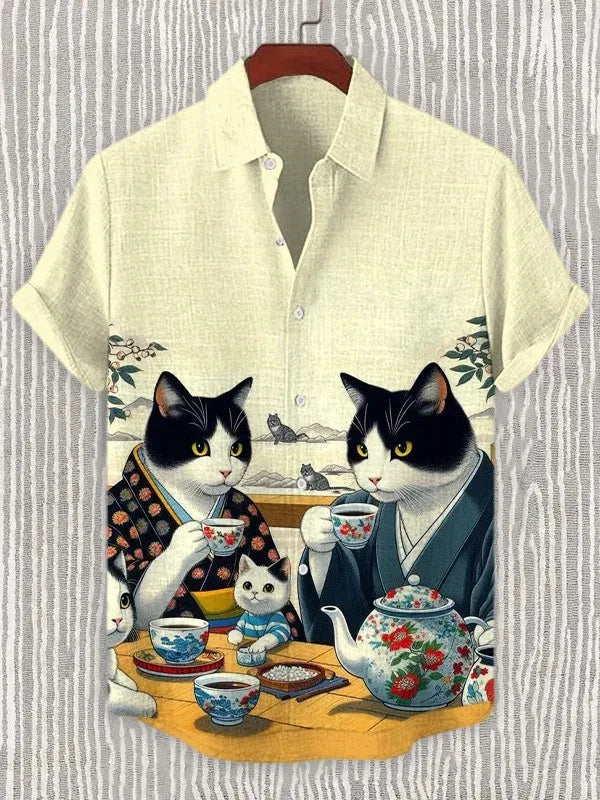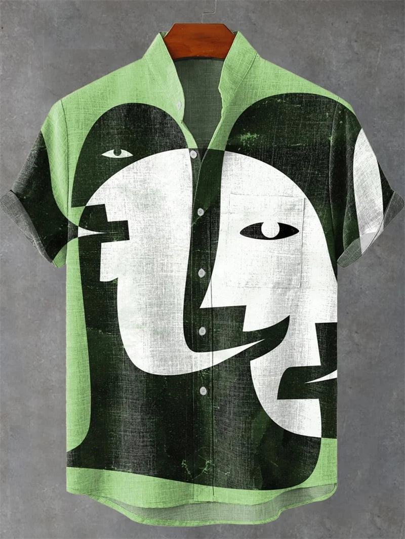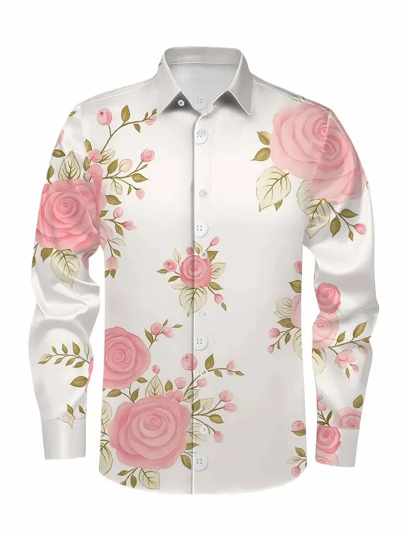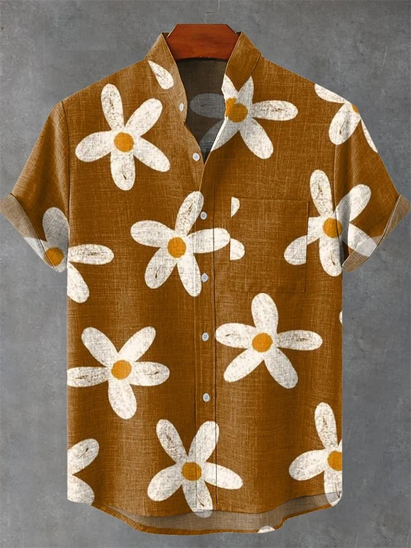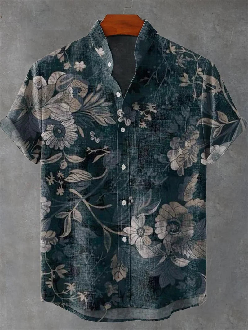 New Vintage Men's Linen Short Sleeve Shirt Casual Fashion Men's Street 3D Flower Printed Shirt Casual Shirt