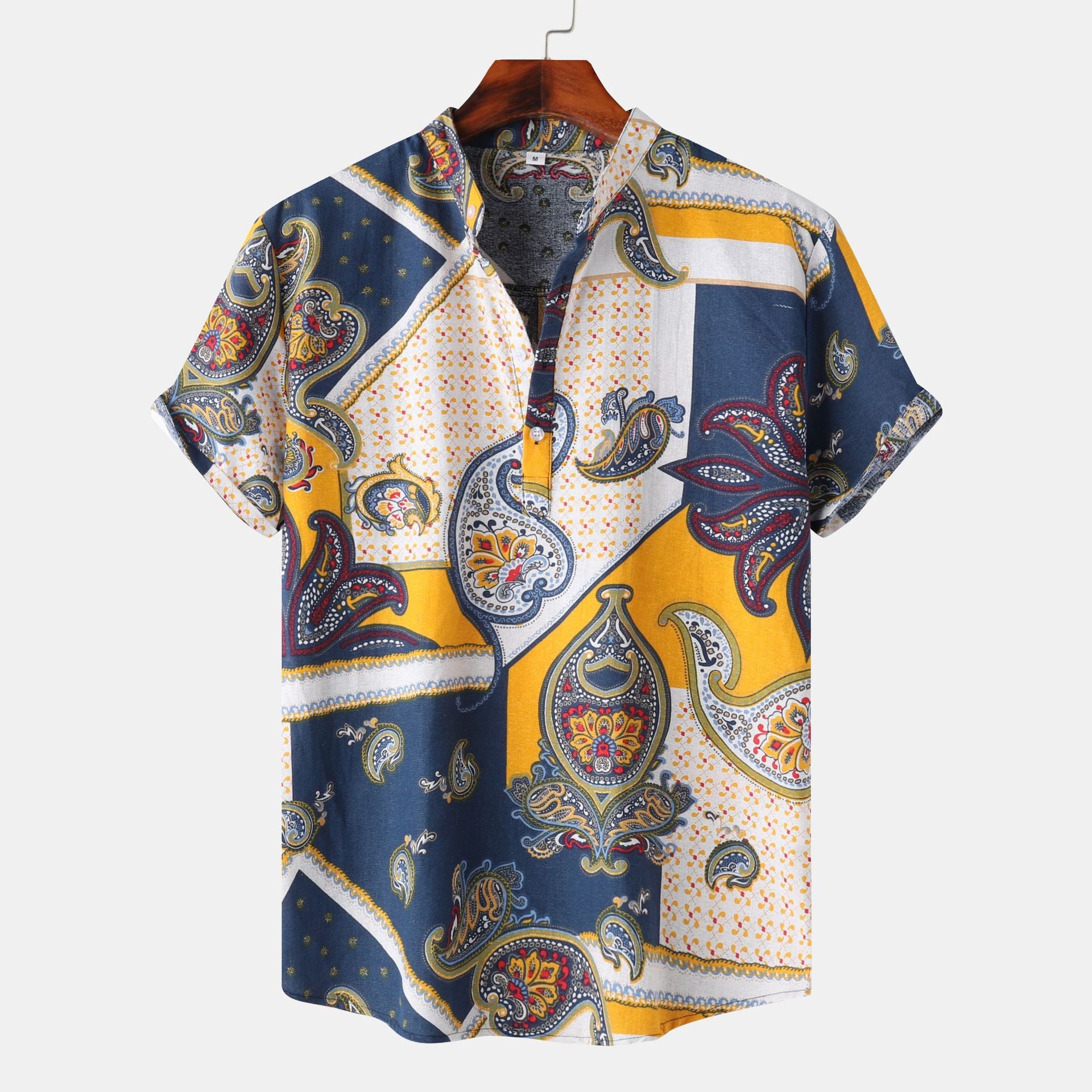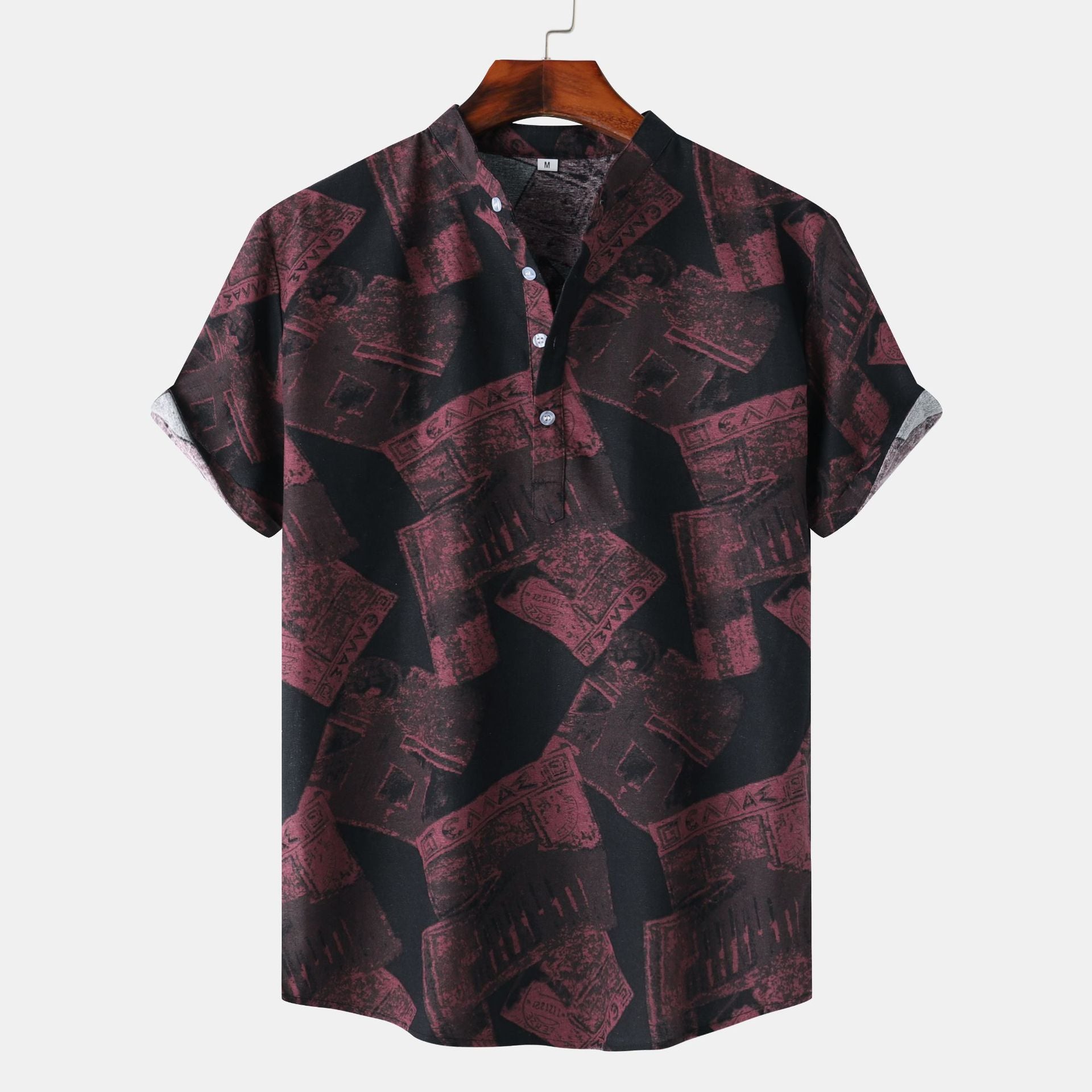 Summer Men's T-irts ort Sve Flip-Collared Stand Fit Casual irt Youth Trendy Floral Print ket Detail Iron-Free