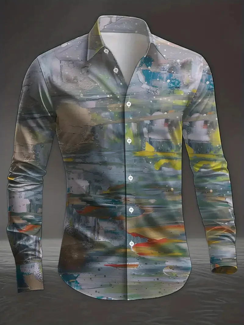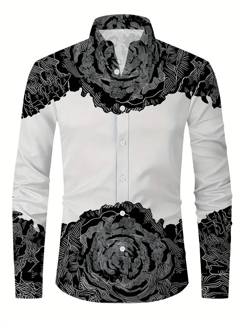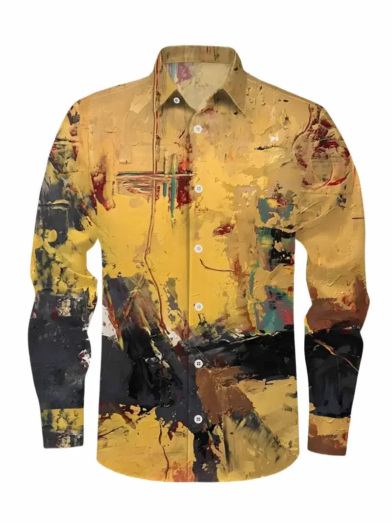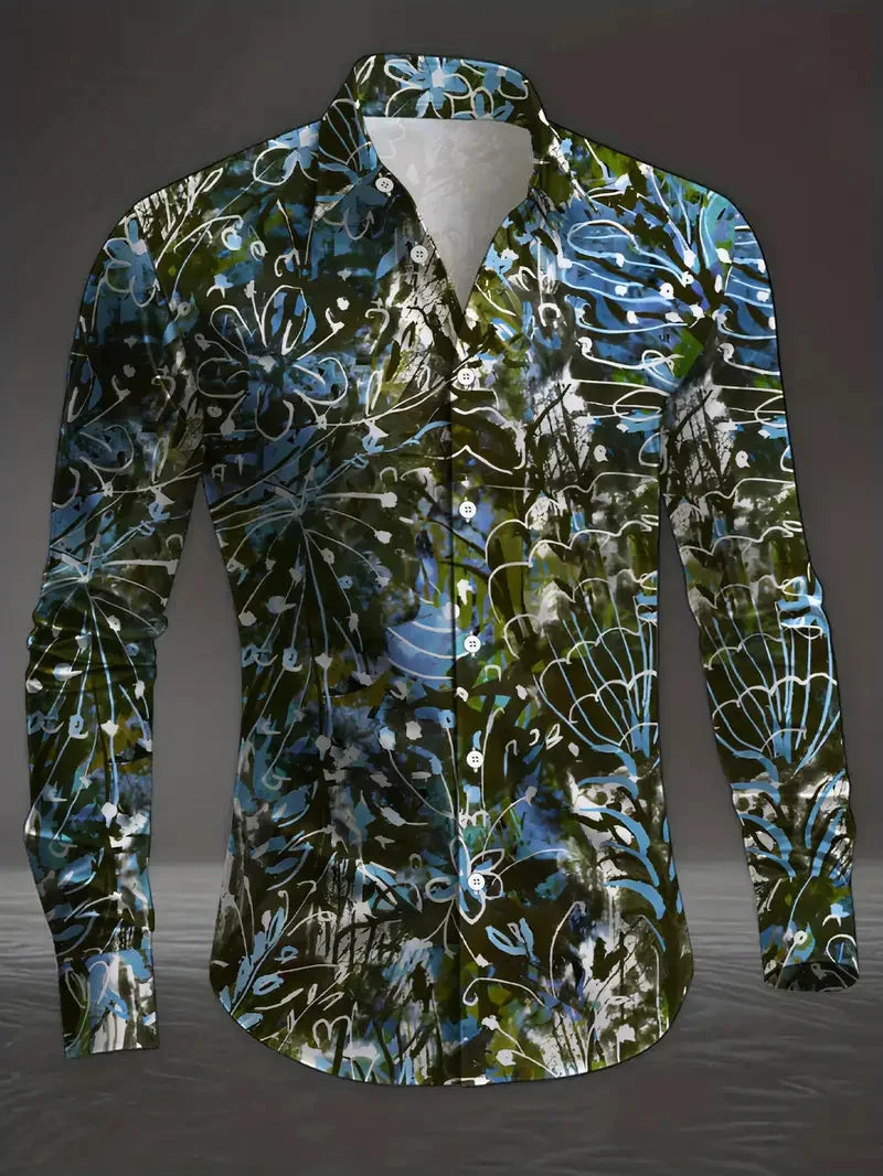 Long Sleeve Hawaiian Shirts Men Fashion Shirt Abstract Painting Floral Blouses Cuba Beach Blouse Turn Over Collar Camisas Unisex