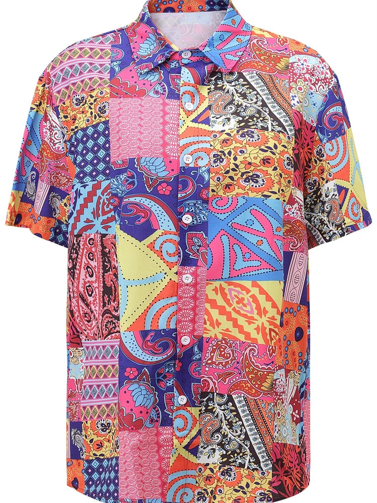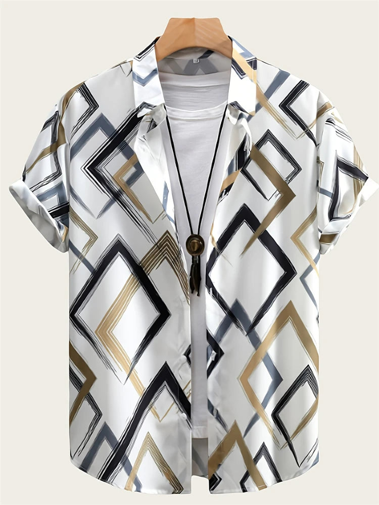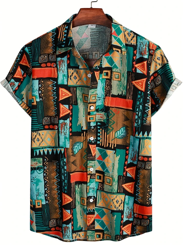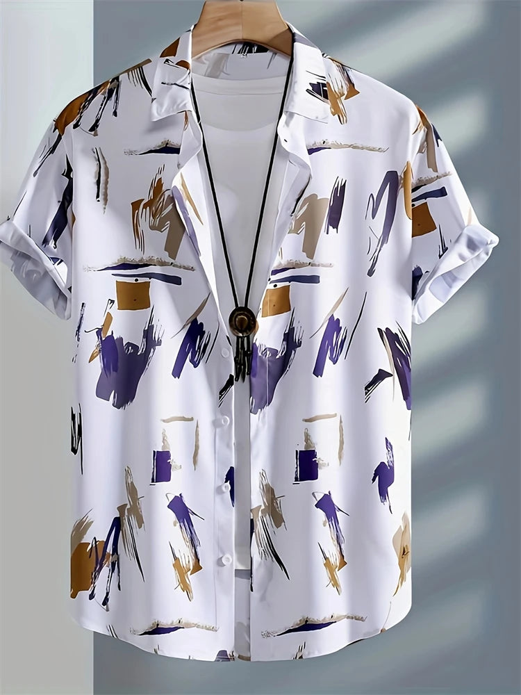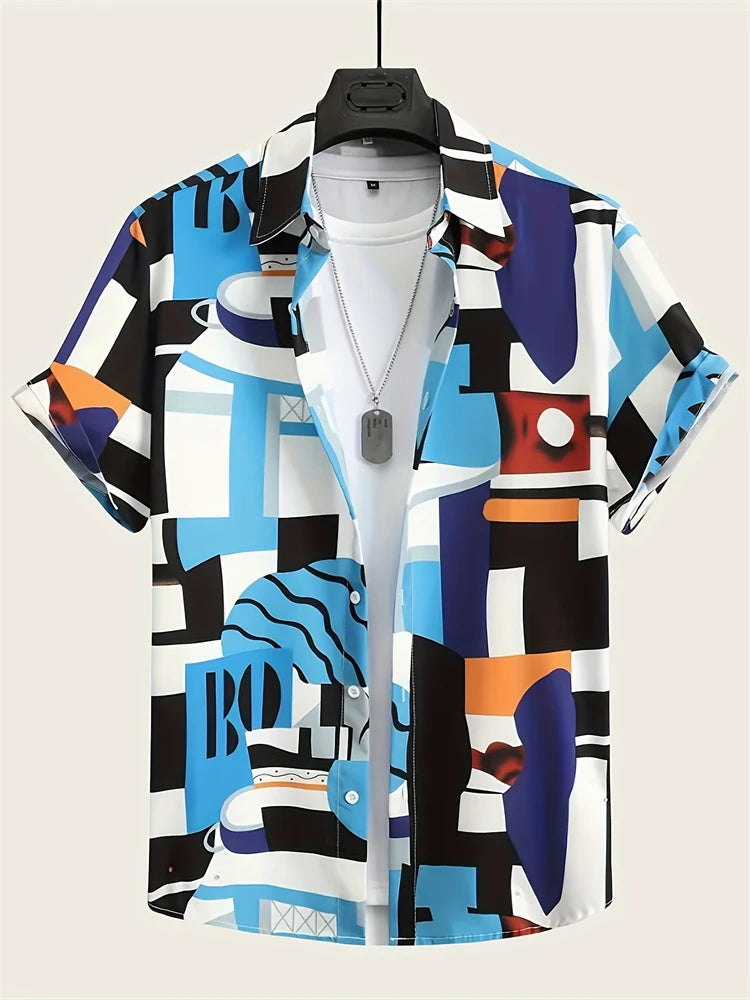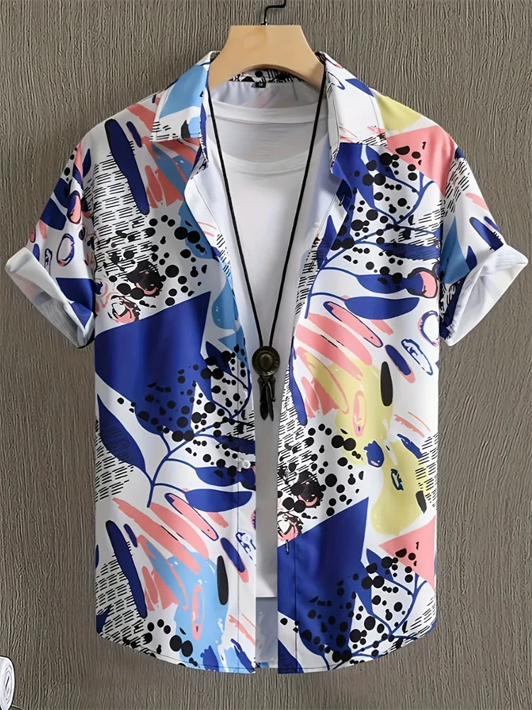 Fashion Men's Hawaiian Graphics Shirt Short Sleeved Button Down Lapel Shirt For Summer Oversized Tops Casual Shirts For Men