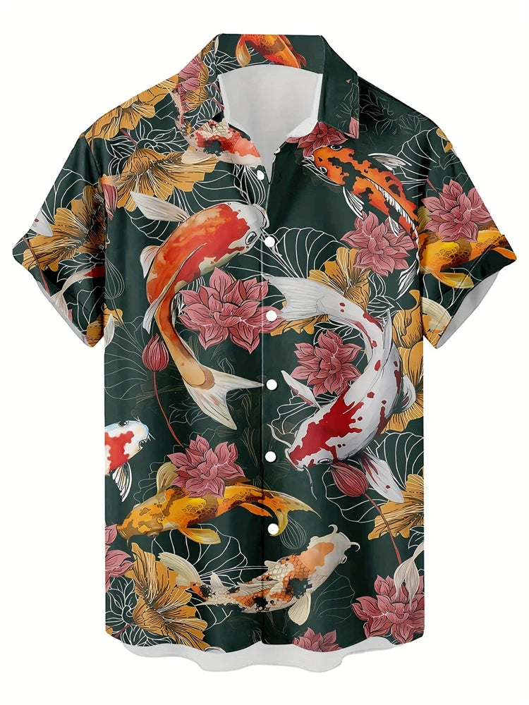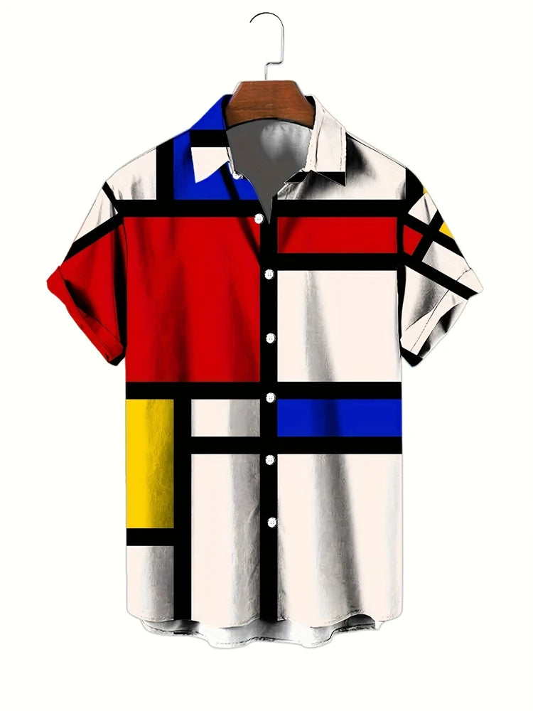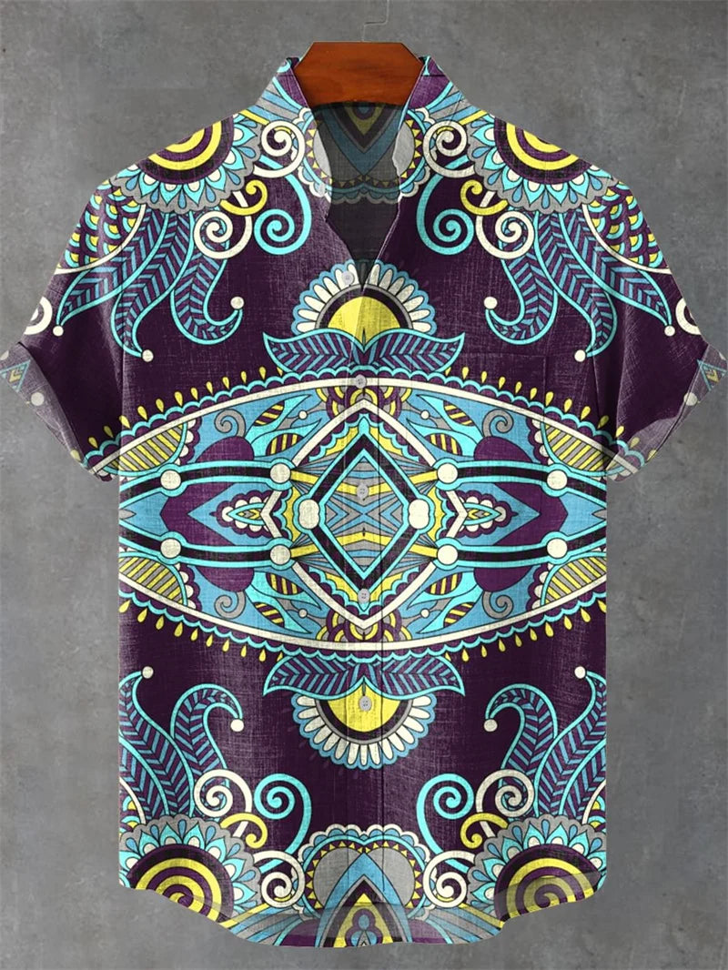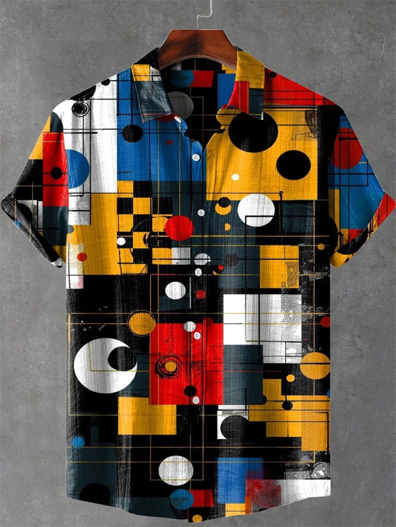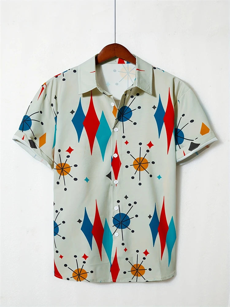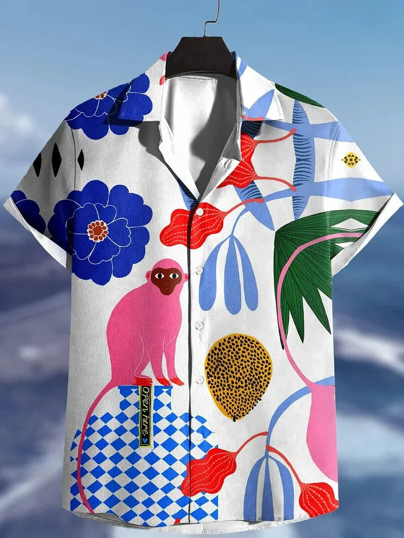 Fashion Men's Hawaiian Graphics Shirt Short Sleeved Button Down Lapel Shirt For Summer Oversized Tops Casual Shirts For Men