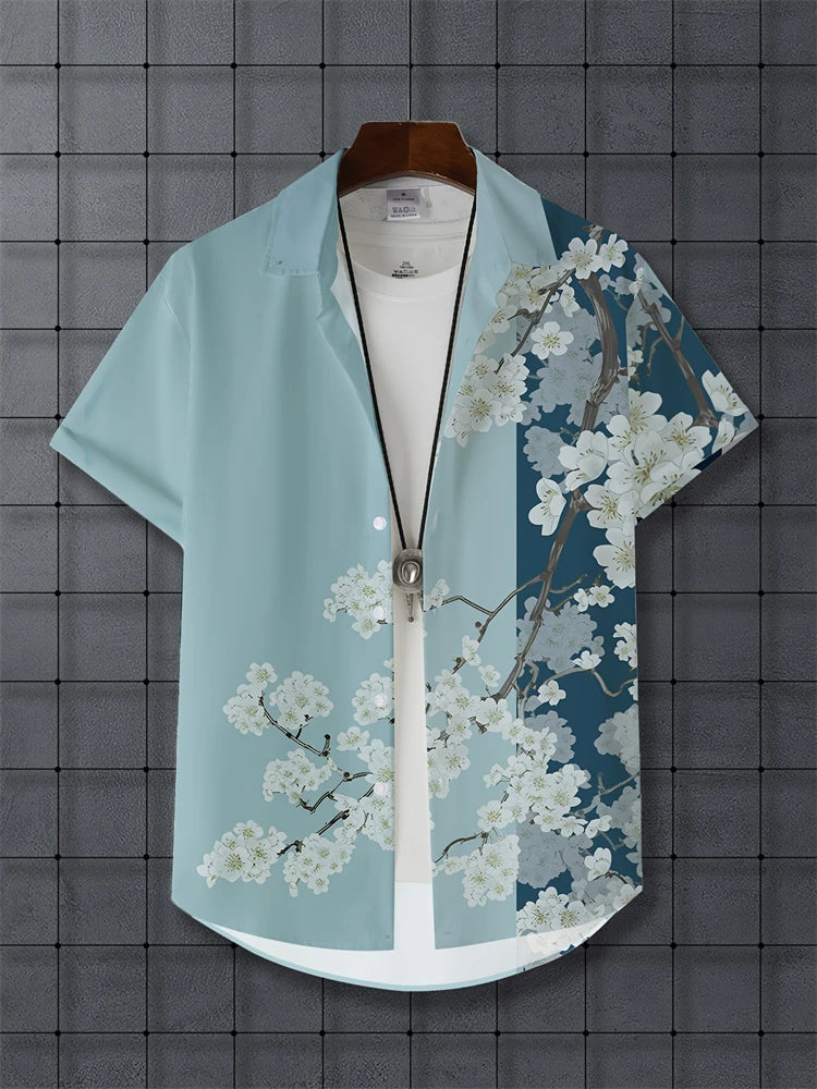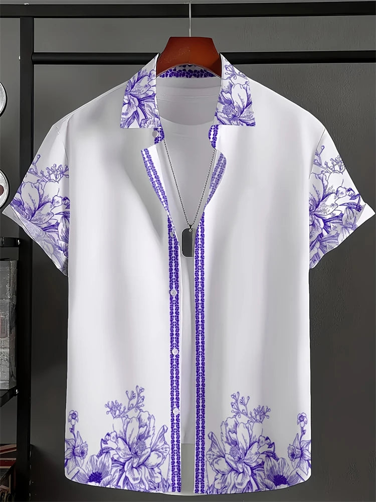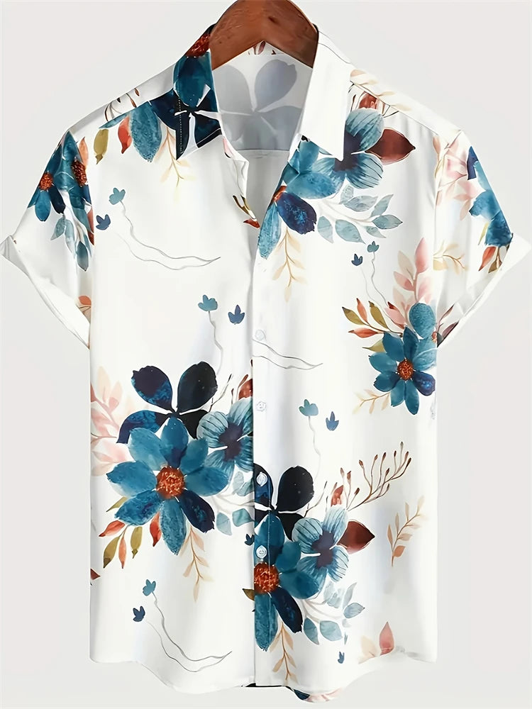 Men's Lapel Button Down Shirt T-Shirt New Floral Print Hawaii Beach Vacation Short Sleeve Breathable Fashion Men's Shirt Tops