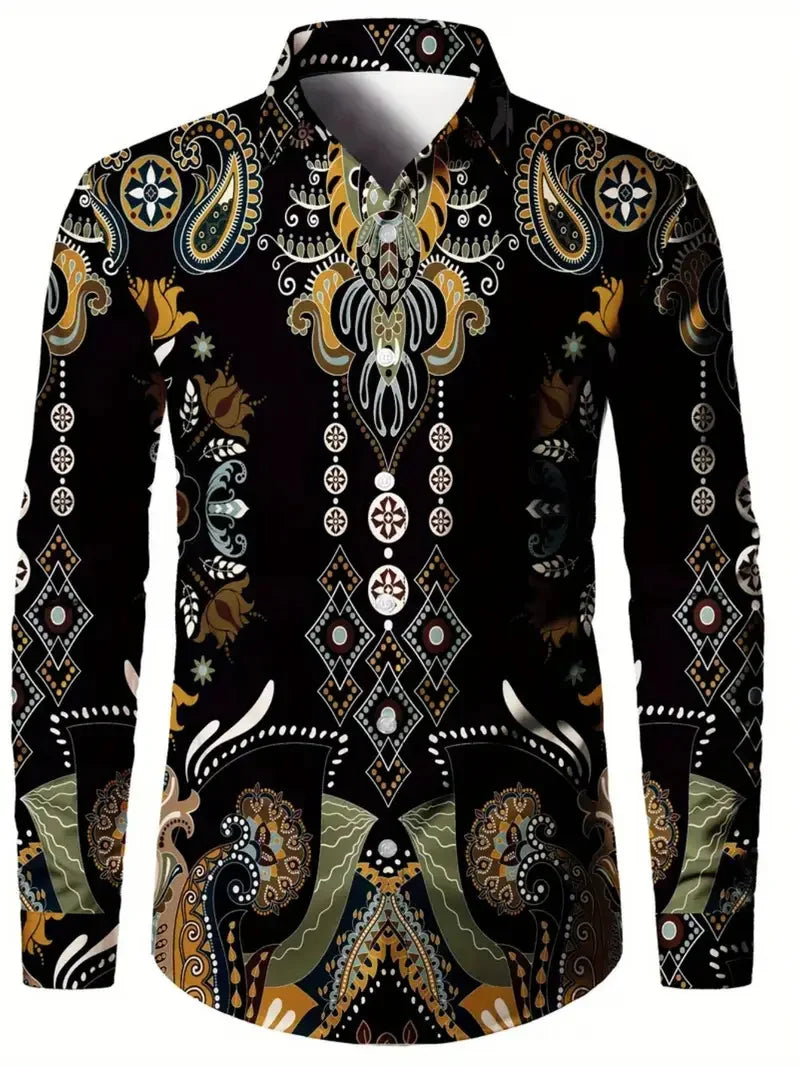 Custom Shirts Men Long Sleeve Casual Seamless Stylized African Pattern Luxury Button Down Shirts for Men Latest Shirt Designs