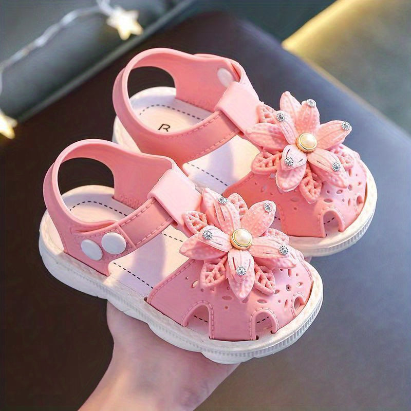 Girls Baby Flower Trendy Breathable Closed Toe Sandals, Lightweight Soft Sandals Crib Shoes For Indoor Outdoor Spring