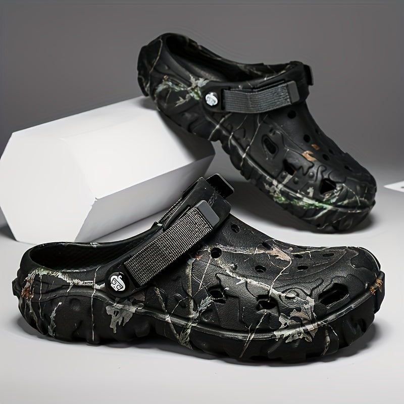 • Men's Trendy Hollow Out Breathable Clogs, Comfy Non Slip Durable Soft Sole EVA Slippers For Men's Outdoor Activities, Men's Footwear