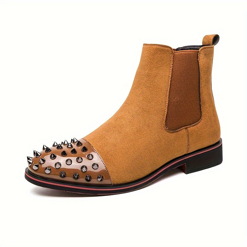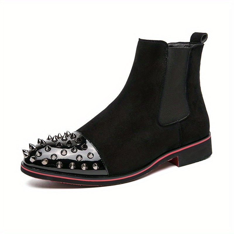 • Men's Rivet Faux Leather Slip-On Chelsea Boots, Fashion Faux Leather Round Toe Ankle Boots, Men's Footwear