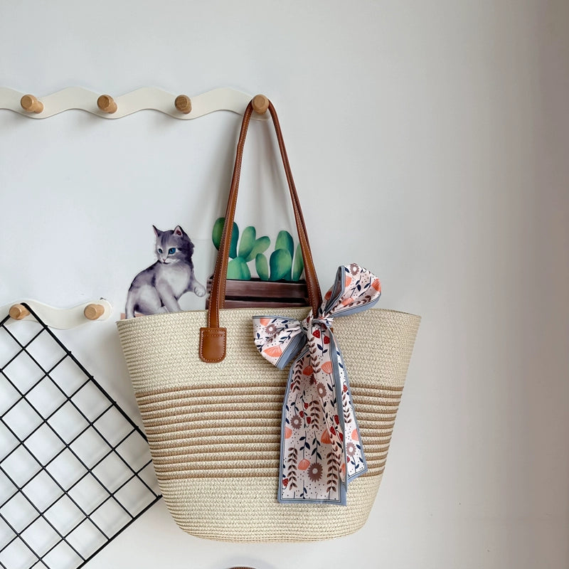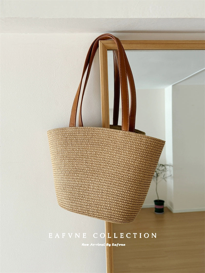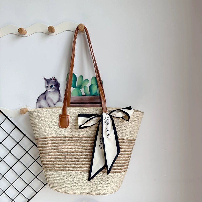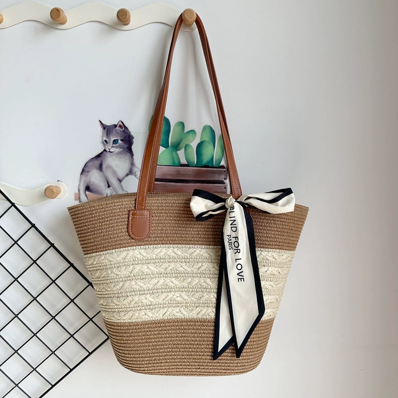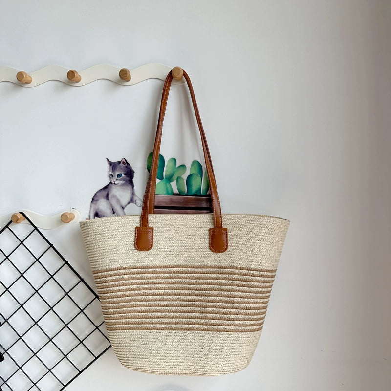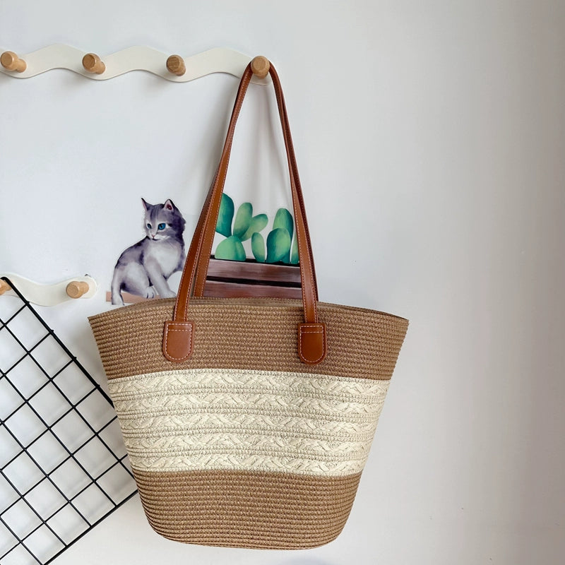Women's Bag Easiest for Match Shoulder Seaside Work Clothing Straw Woven Bag
