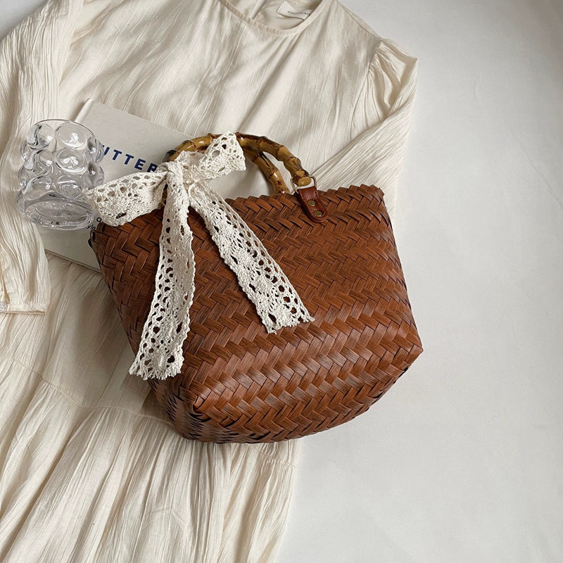 Women's Retro Satchel Vegetable Basket Straw Woven Bag