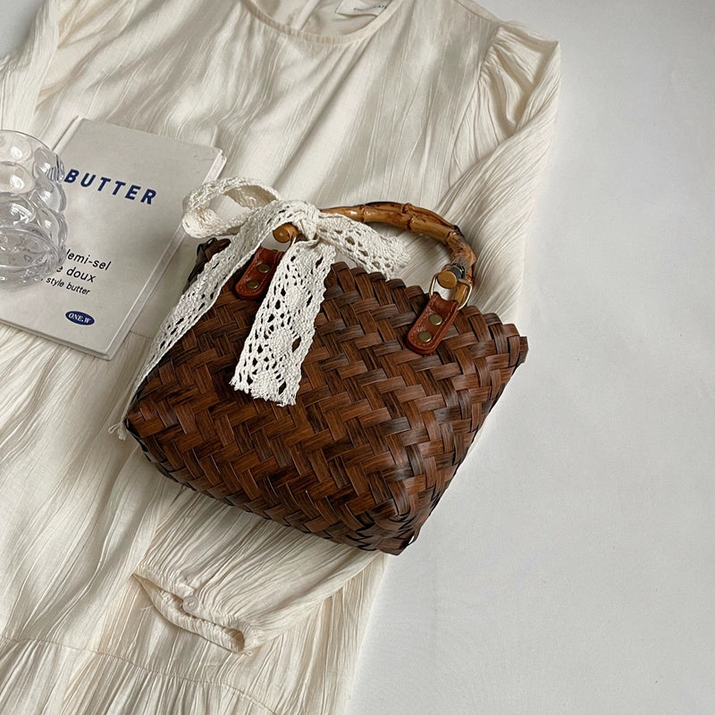 Women's Bag Vacation Style Lace Satchel Straw Woven Bag