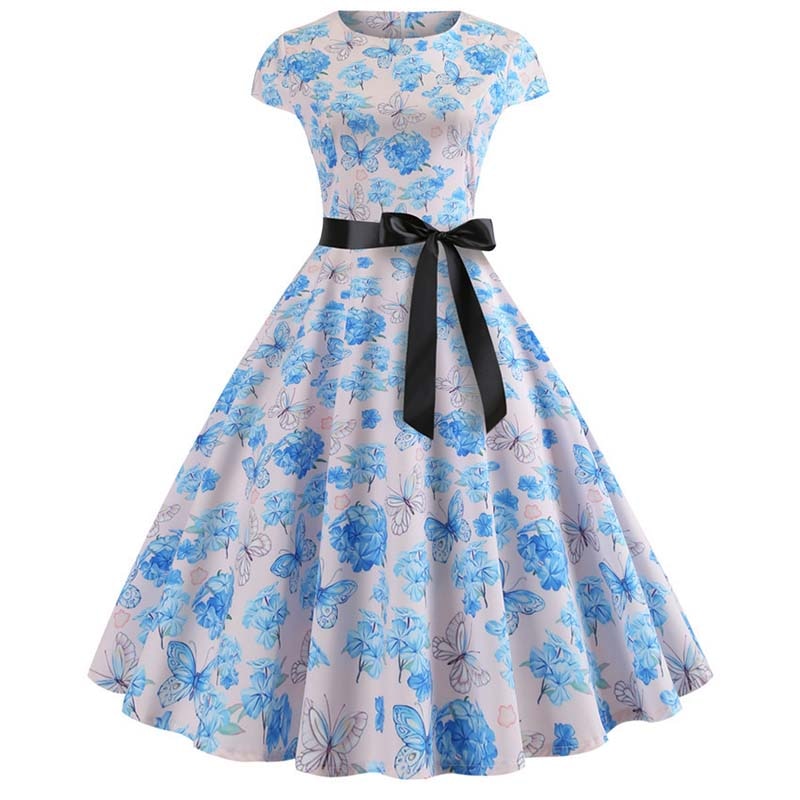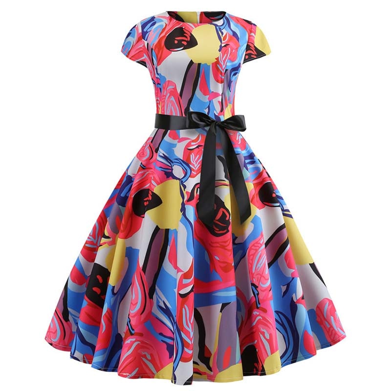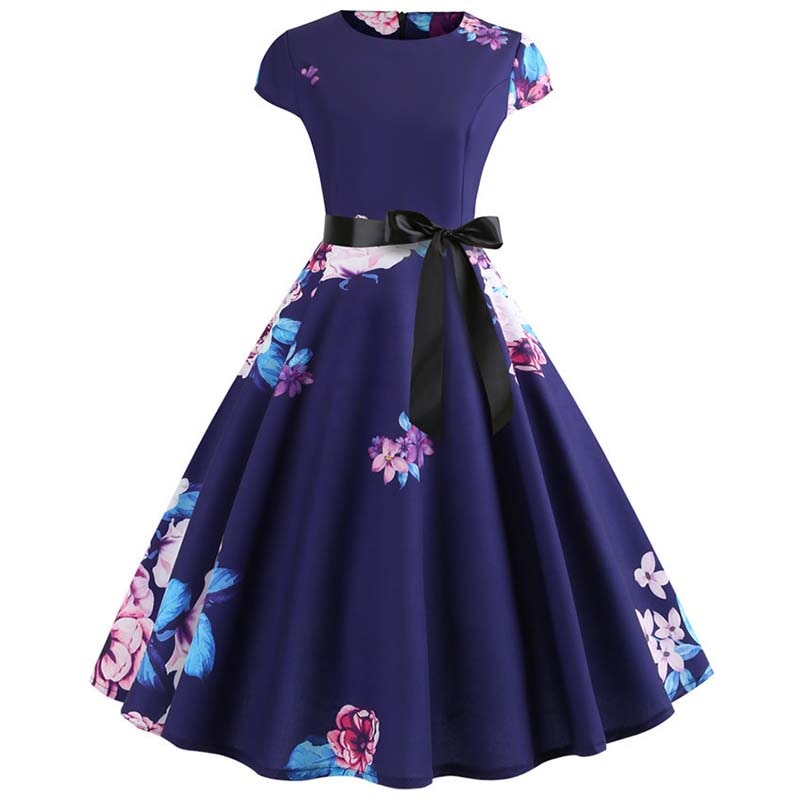 • Women Vintage Dress Summer Floral Print Short Sleeve Dresses 50s 60s Office Party Rockabilly Swing Retro Pinup Plus Size