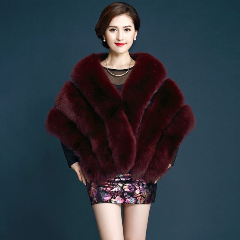 • Women Faux Fox Fur Mink Cloak Luxury Winter Vests Wedding Dress Shawl Furry Cape Vest Female Waistcoat Short Sleeveles Fur Coat