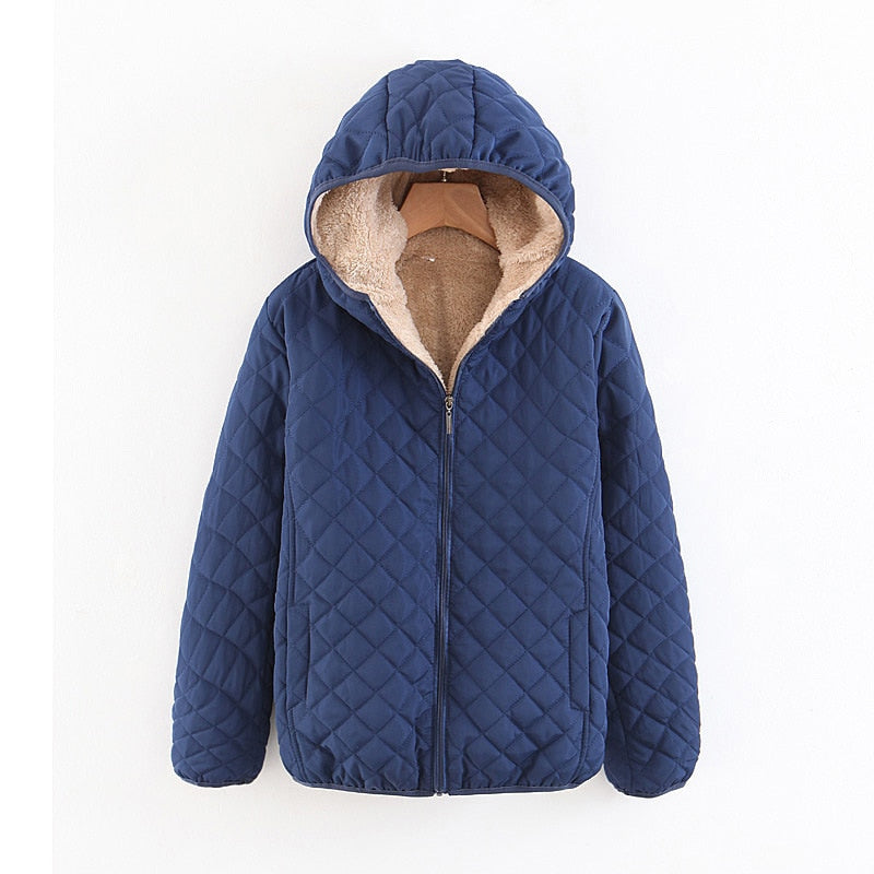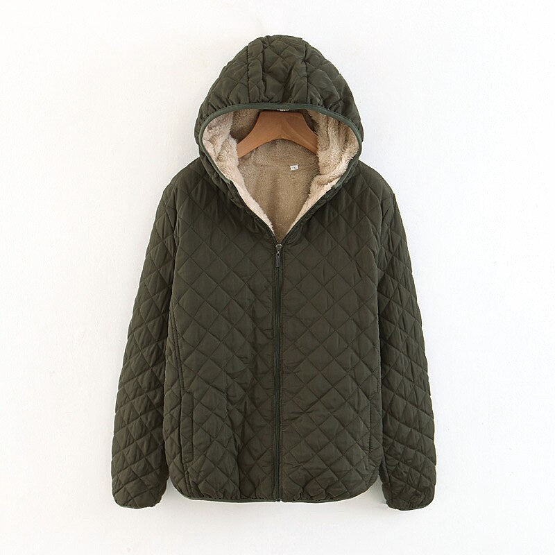 • Women Autumn Winter Parkas Coat Jackets Female Lamb Hooded Plaid Long Sleeve Warm Winter Jacket S~3XL casaco feminino