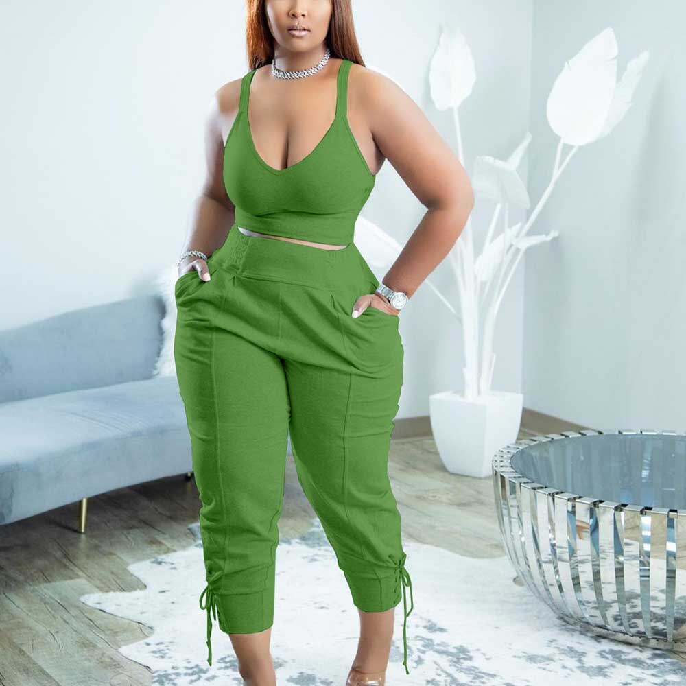 SPECIFICATIONSWaist Type: MIDTop: camisole Boat NeckSuits: 2 Pieces SetStyle: CasualStyle: Sexy 2 Pieces Set CasualSize: runs smaller than usualSeason: SummerPlace Of Origin: China (Mainland)Pattern Type: SolidPant...