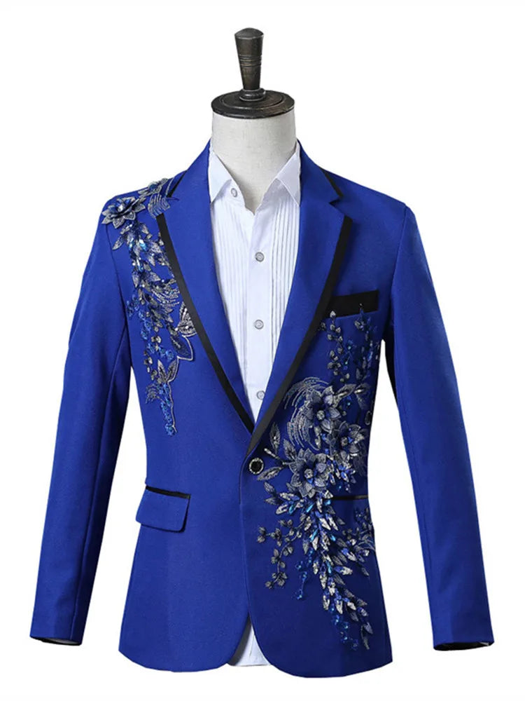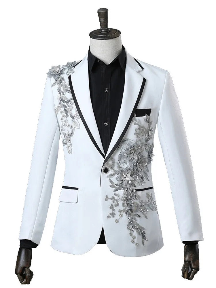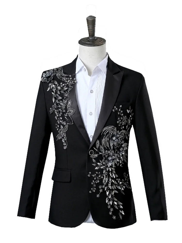 New Embroidered Tuxedos Men, Black Wedding Groom Suit, Male Singer Performance, Party Blazer, Prom Costume, Fashion Paillette