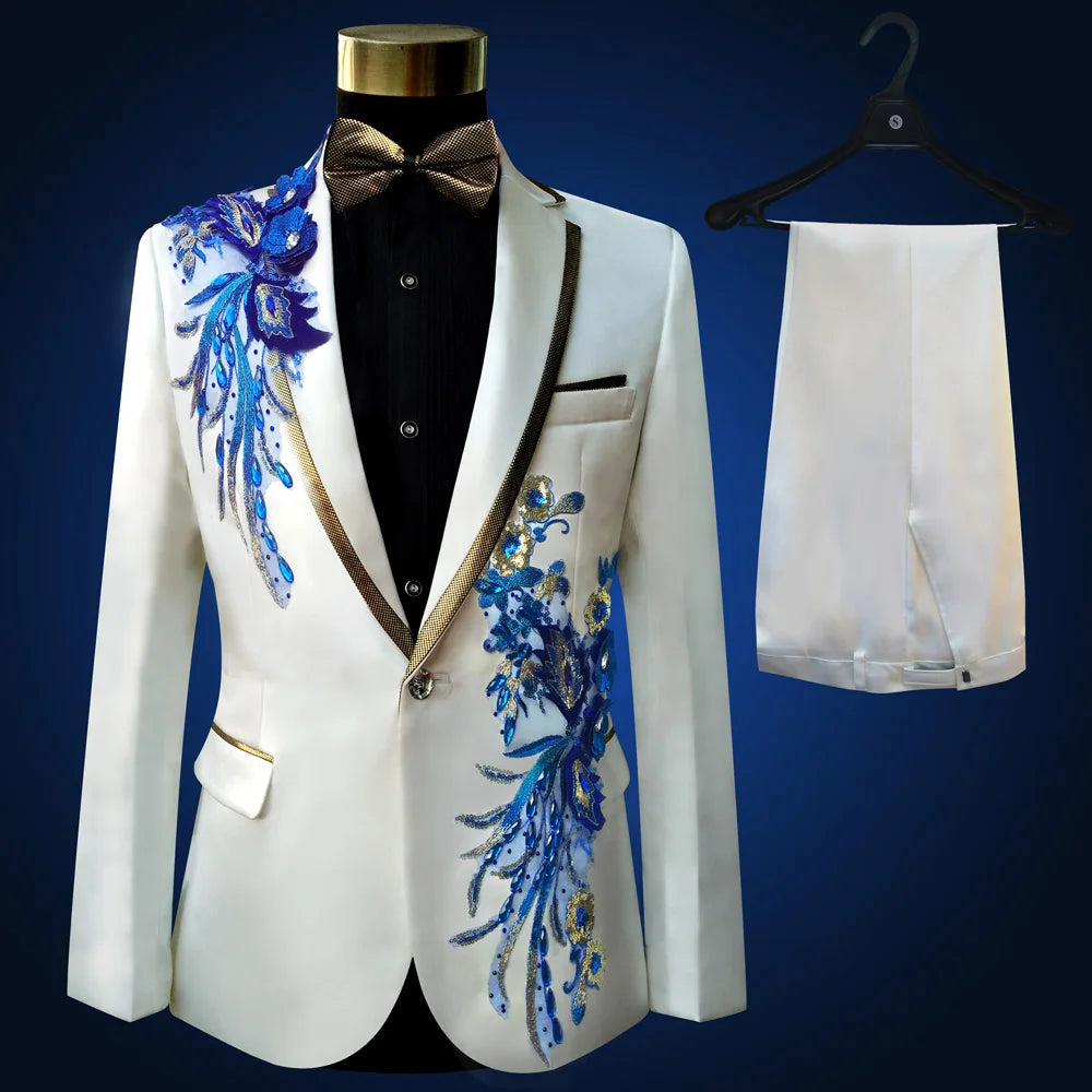 Temperament Gentleman Men's Suit Set Fashion Three Dimensional Marquetry Diamante Evening Dress Gorgeous Slim Groomsman Suits