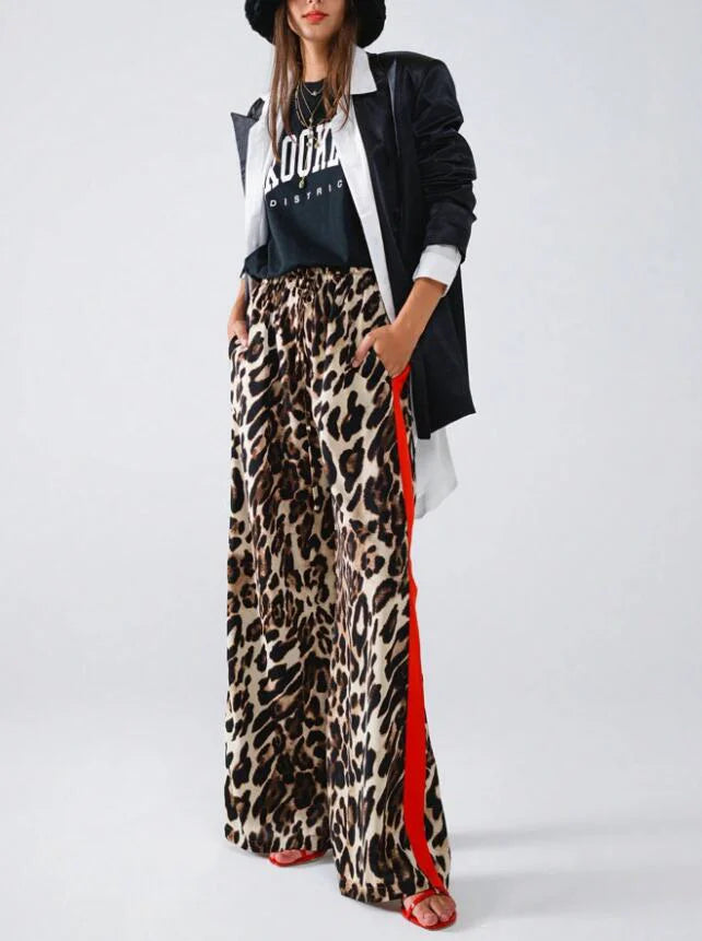 New women's fashion leopard print casual straight leg wide leg pants