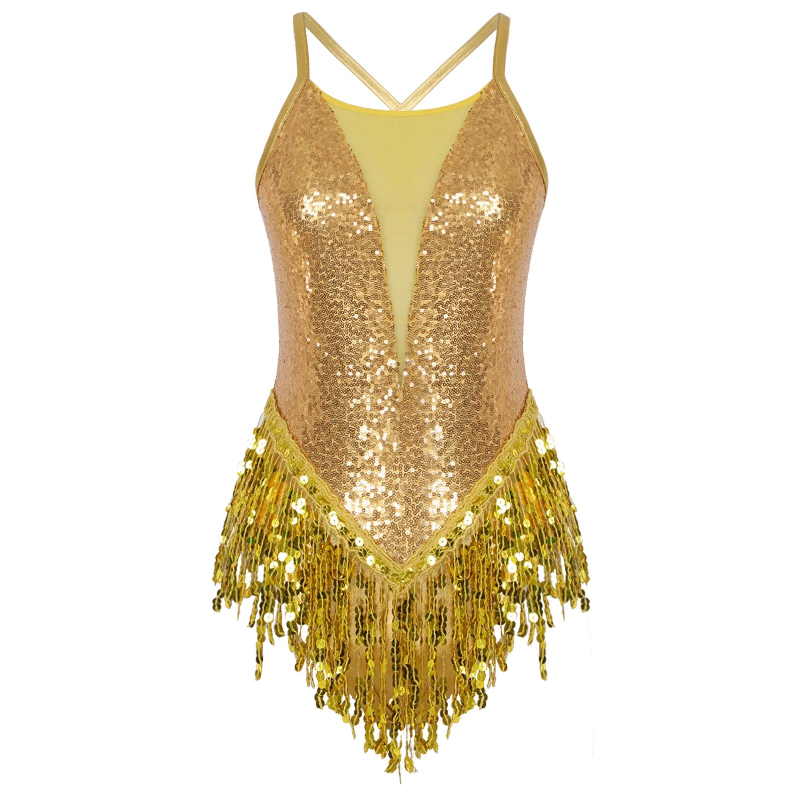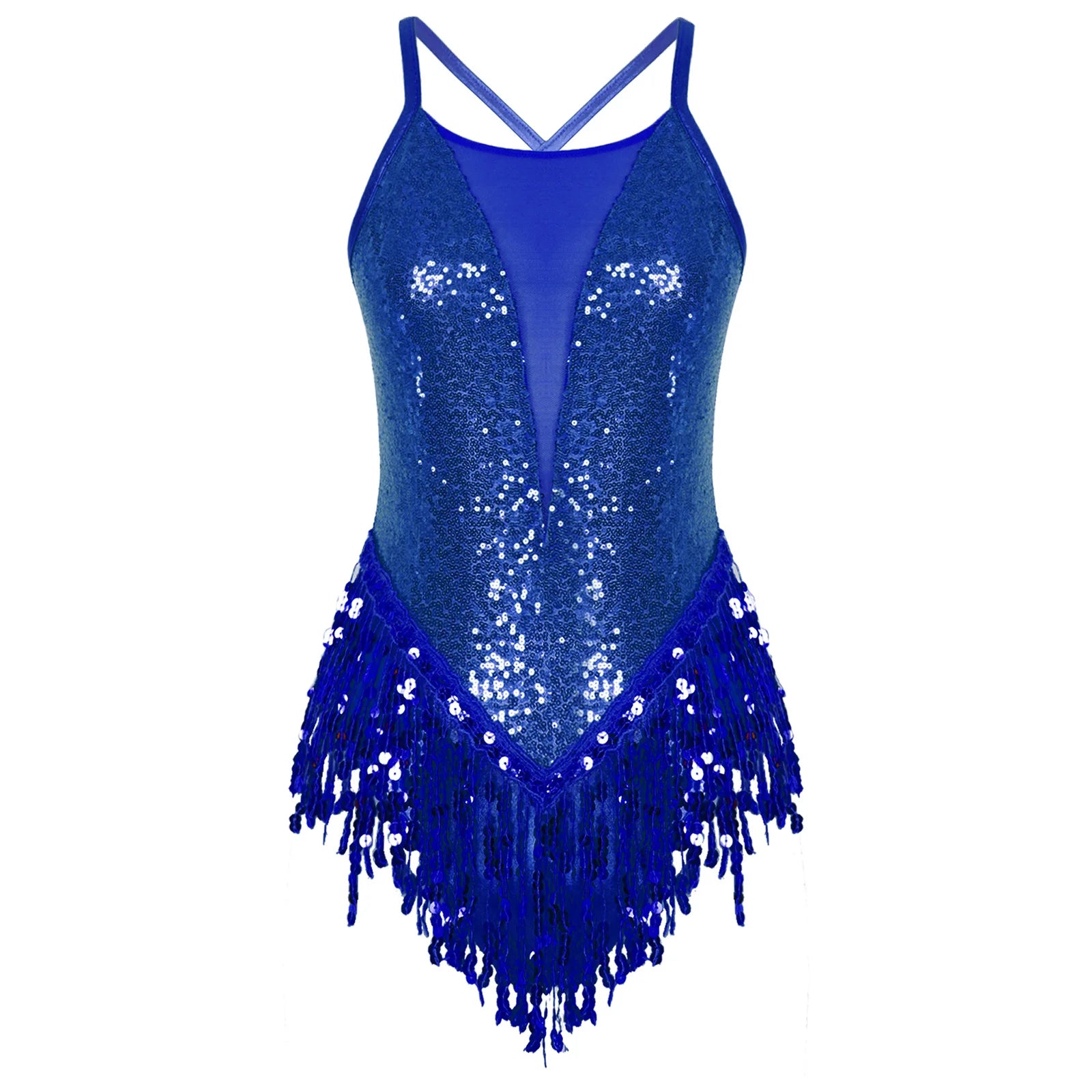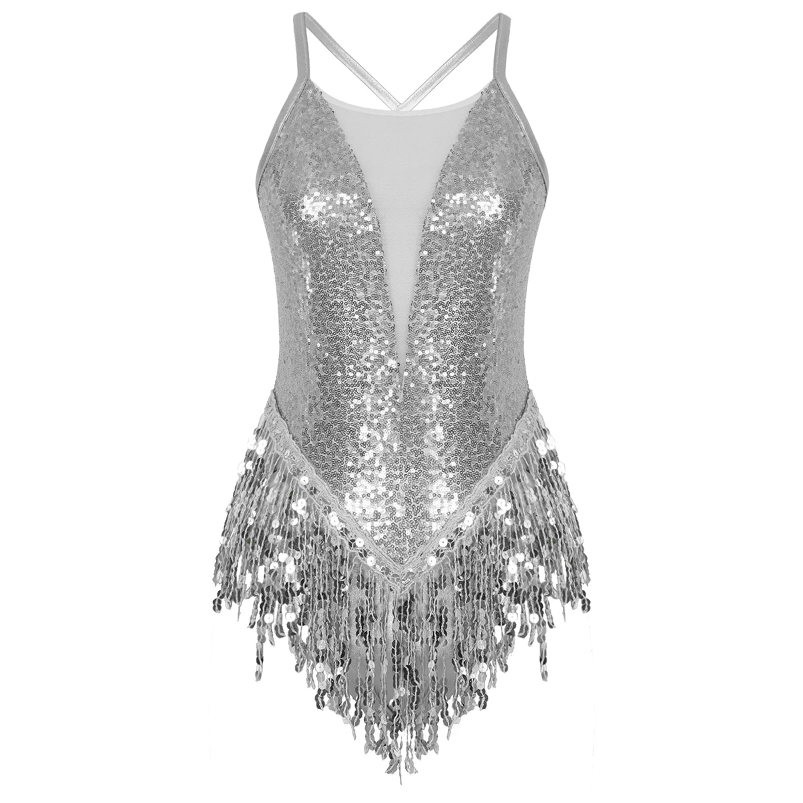 Womens Sparkly Tassel Bodysuit Sequins Gymnastics Ballet Dance Leotard Fringed Jumpsuits Latin Jazz Dance Performance Costume
