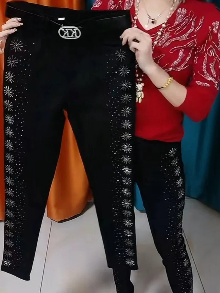 Women Jeans Autumn Spring 2025 Fashion High Waist Hot Drill Slim Cotton Elastic Denim Trousers Elegant Casual Black Pencil Pants
