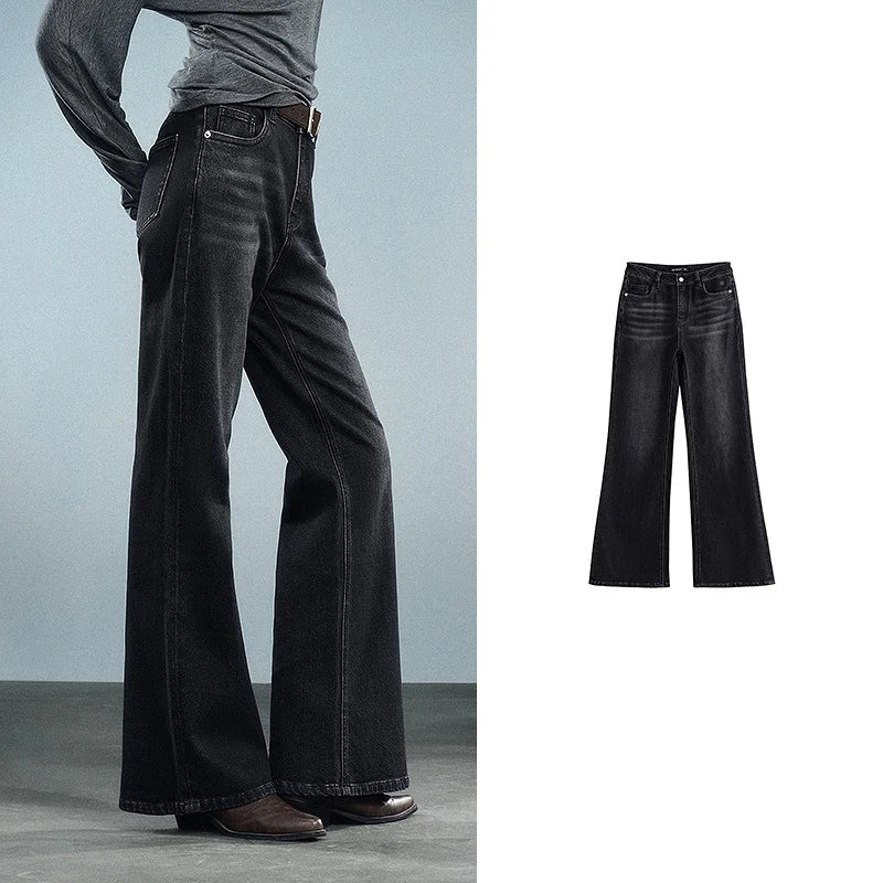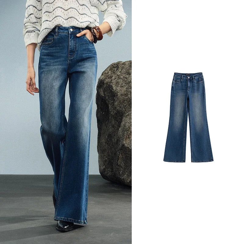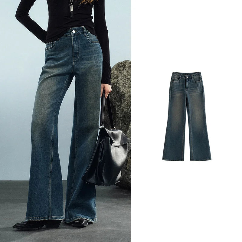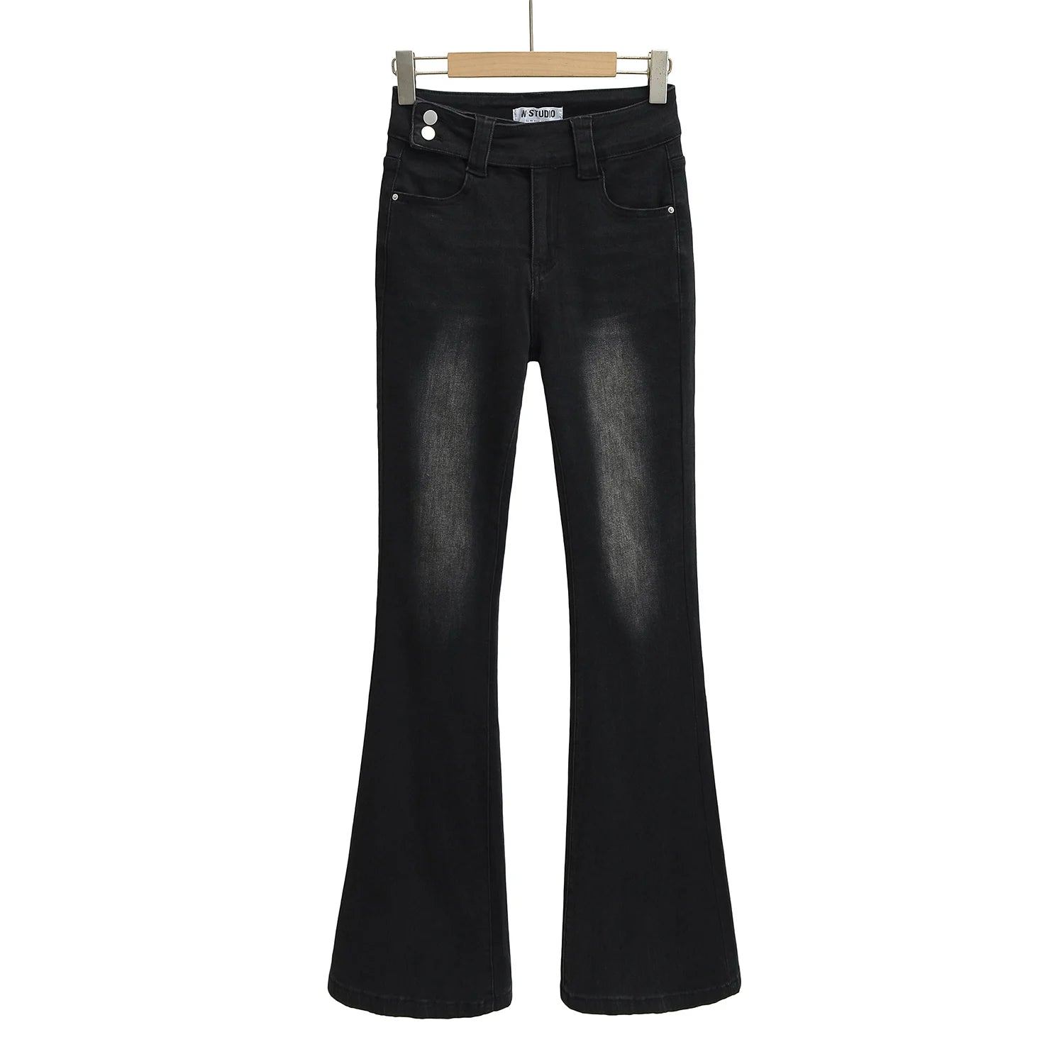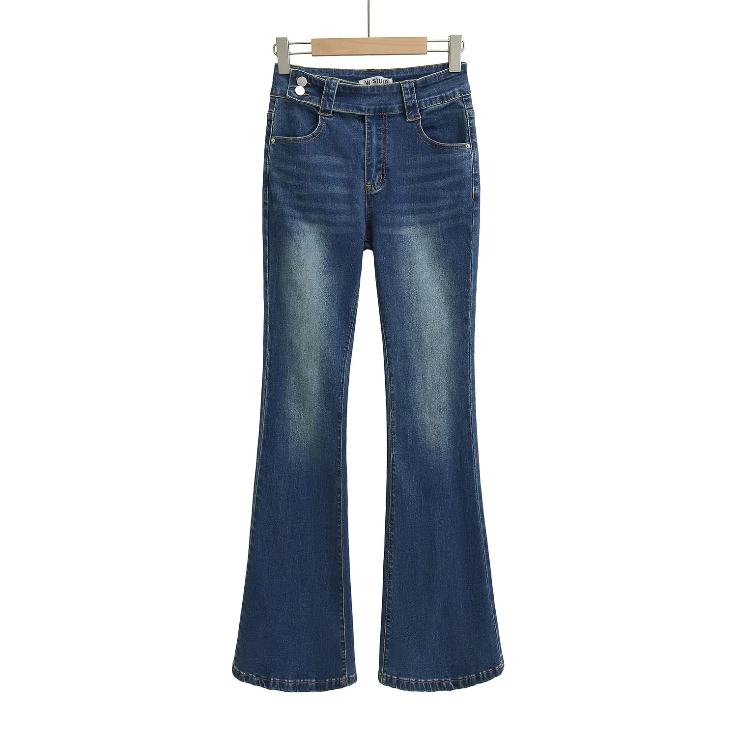 TOYOUTH Women Denim Jeans 2025 Autumn New Retro Lycra Micro Flare Pant