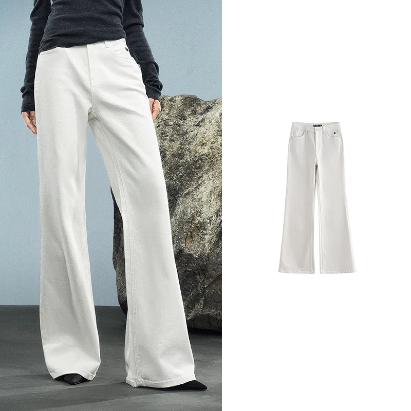 HH Women 2025 Autumn Fashion Vintage Low-waist Wide Leg Jeans Female Solid Color With Pockets Zipper Straight Casual Pants