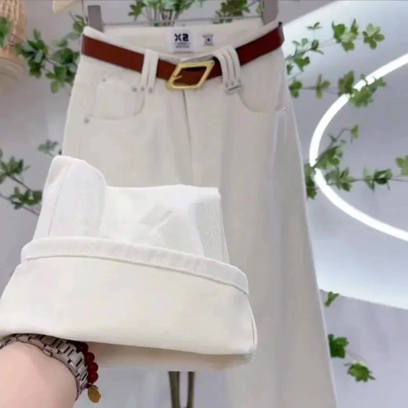Jeans Women Spring And Summer 2024 New Straight Pants Pocket Buttons Slim And Comfortable High Waist Solid Color Wide-Leg Pants