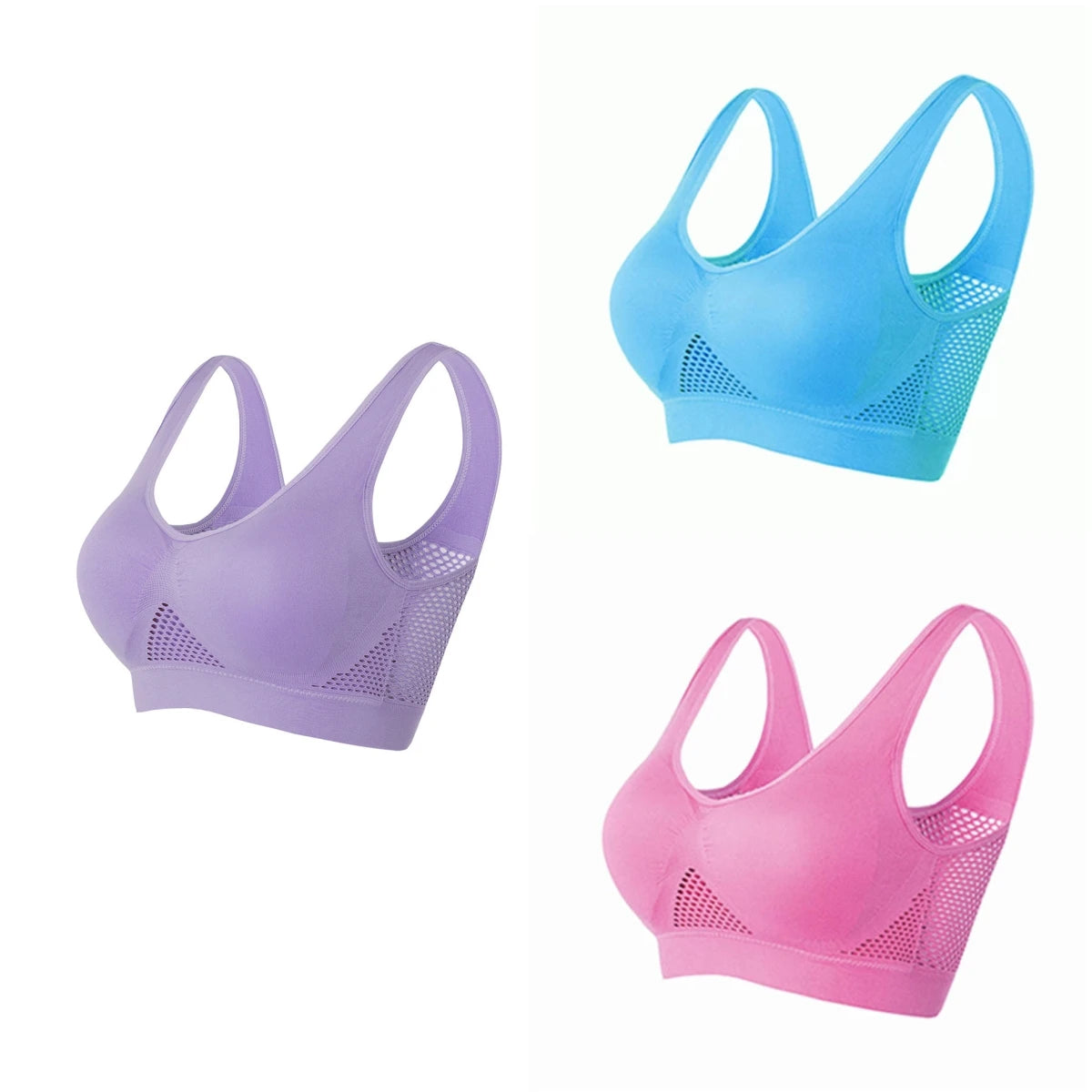 3PCS/lot Hollow out Breathable Sports Bra With Pad Plus Size Seamless Vest For Women Active Wirefree Brassiere Push Up Bra S-6XL