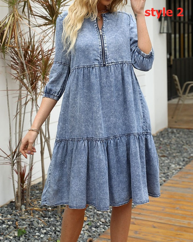 Fashion Jeans woman clothing 3/4 sleeve + cover knee dress summer fashion casual skin-friendly slim classic Denim Dress