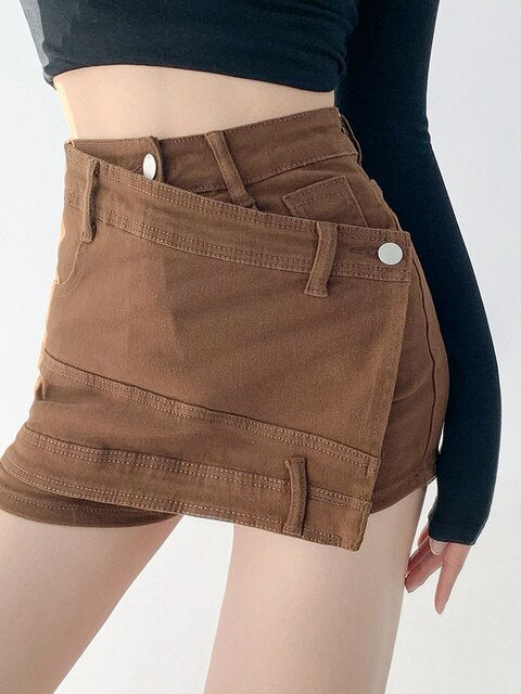 Shorts Women Summer Skinny Solid Denim Irregular Fashionable Holiday Korean Version Ladies Trousers Leisure Stylish High Waist