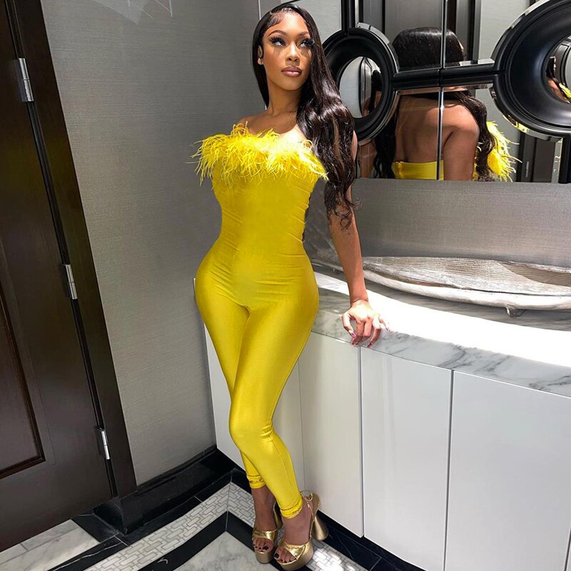 KLALIEN Fashion Wrapped Chest Jumpsuits Sexy Feathers Collar Sleeveless High Waist Body-Shaping Overall Partywear Female OutfitSPECIFICATIONSWaist Type: MIDType: JumpsuitsThickness: STANDARDStyle: Sexy & ClubRelease Date: Summer 2022Pattern Type: SolidPattern: Pencil PantsPant Length(cm): Full LengthOrigin: Mainland ChinaModel Number: 2Q13715Material: PolyesterMaterial: SpandexLength: Full LengthItem... Regular price $54.99 USDSale price $54.99 USD Regular priceUnit price per$81.69 USDSale Sold out