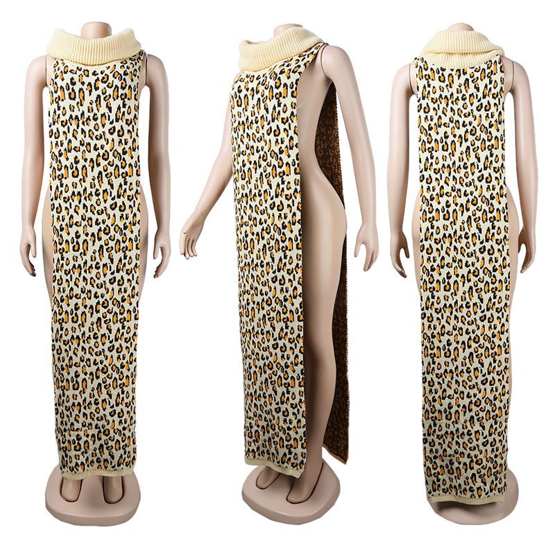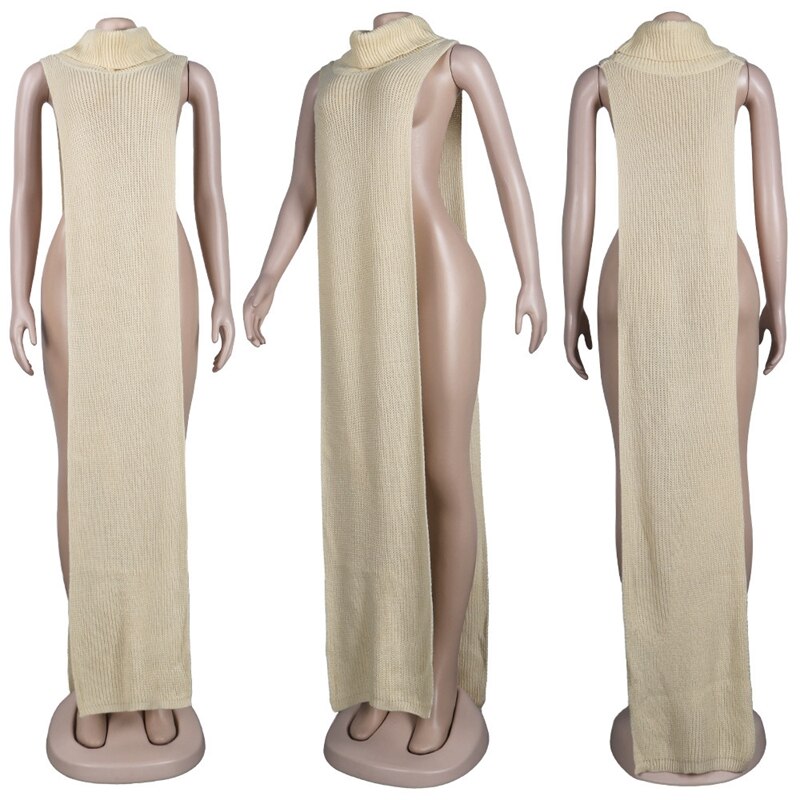 Sexy Knitted Side Split Sweater Dress Sleeveless Spring Clothes