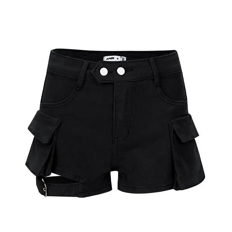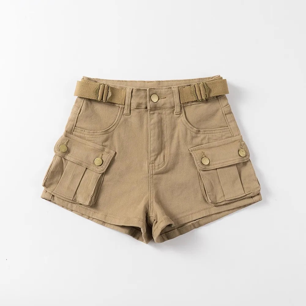 High Waisted Cargo Shorts Khaki Chic Pockets Jeans Shorts Sexy Girl Summer Clothes for Women