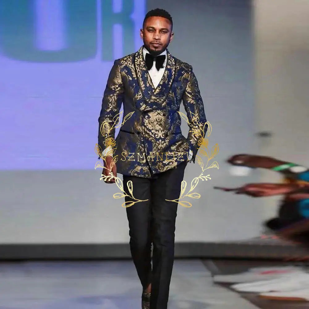 • Fashionable Plaid Men's Suit 2 Piece Formal Party Suit for Male Wedding Groom Tuxedo Double Breasted Jacket Pants