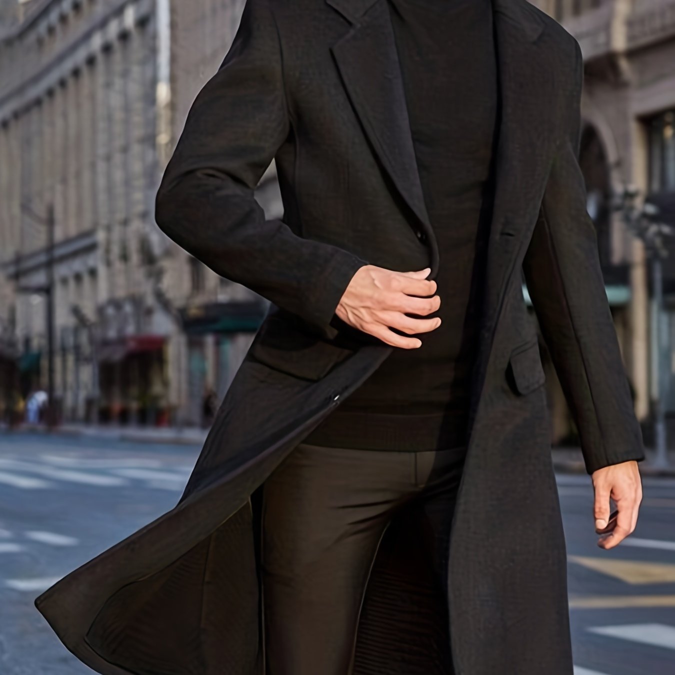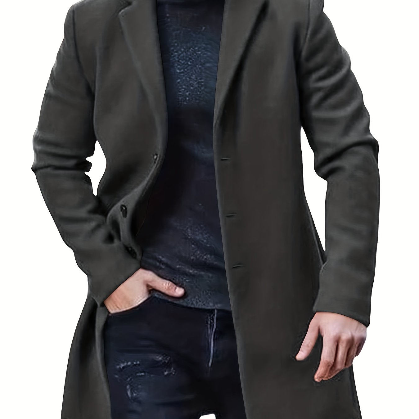 Men's Semi-formal Single Breasted Lapel Elegant Retro Trench Coat for Fall Winter Business