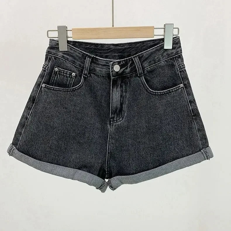 Women Denim Shorts Wide Leg Black High Waist Short Jeans Straight Leg Vintage Blue Denim Shorts For Women Summer Jean Shorts