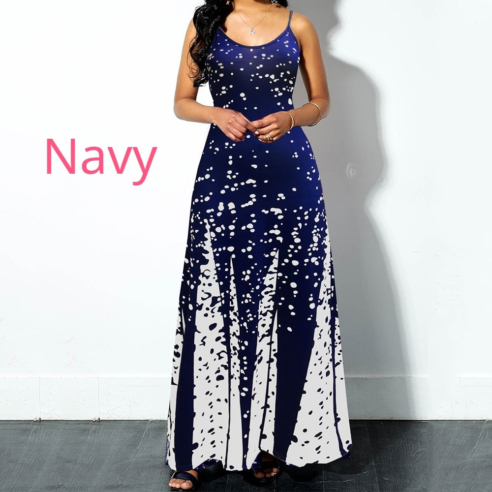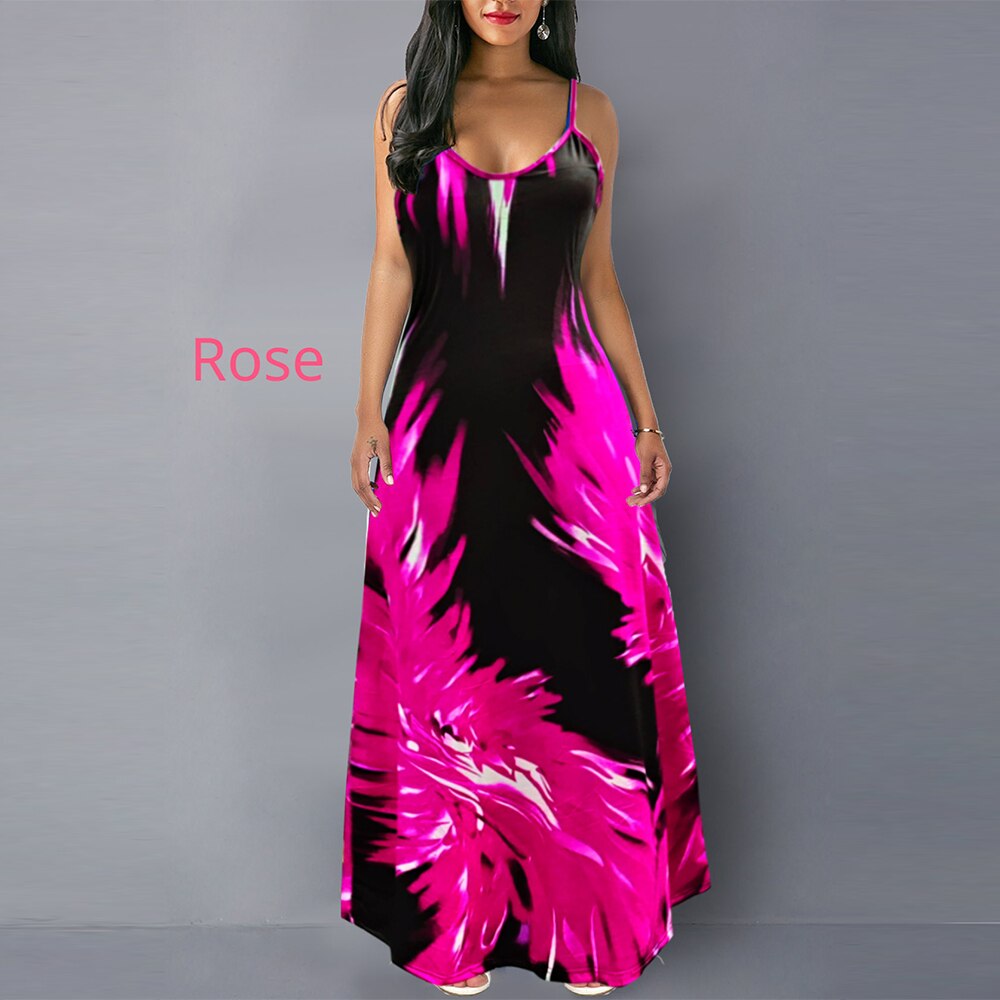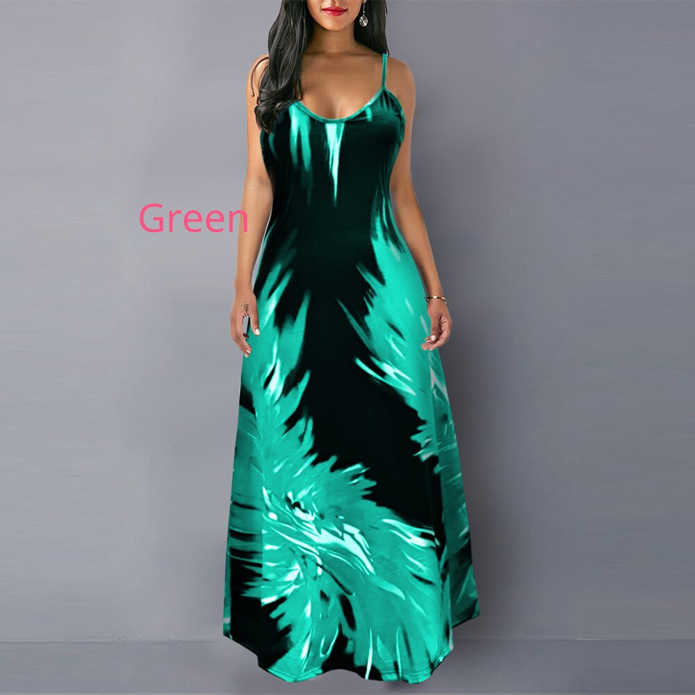 SPECIFICATIONSsize: Plus SizeWaistline: Natural FactorsStyle: CasualSleeve Style: Spaghetti StrapSleeve Length(cm): SleevelessSilhouette: A-LINESeason: SummerPattern Type: PrintOrigin: Mainland ChinaNeckline: V-NeckModel Number: 322dMaterial: PolyesterMaterial: LanonGender: WOMENDresses Length: Ankle-LengthDecoration: Tie...