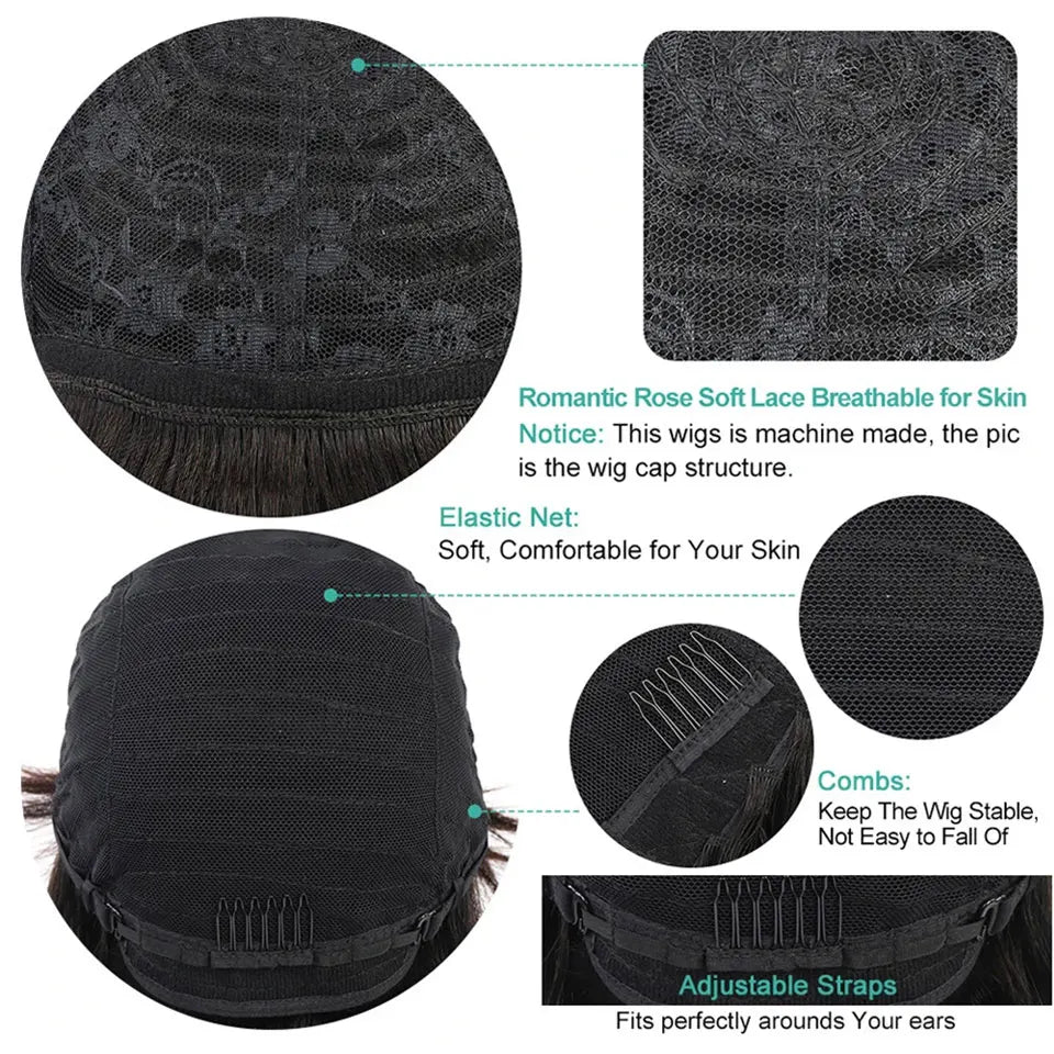 #1B Black Short Curly Pixie Cut Wigs For Women Curly Wig Brazilian Remy Human Hair Short Bob Full Machine Made Wig 150% Density