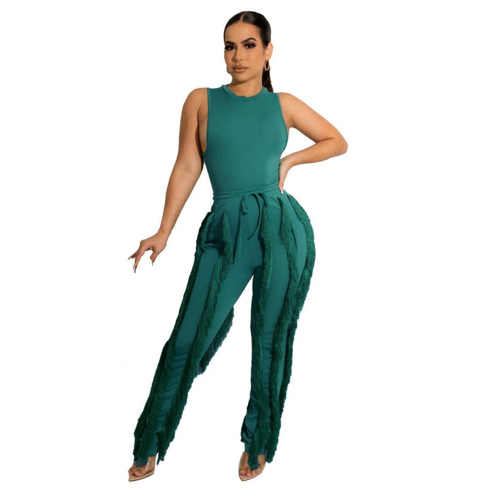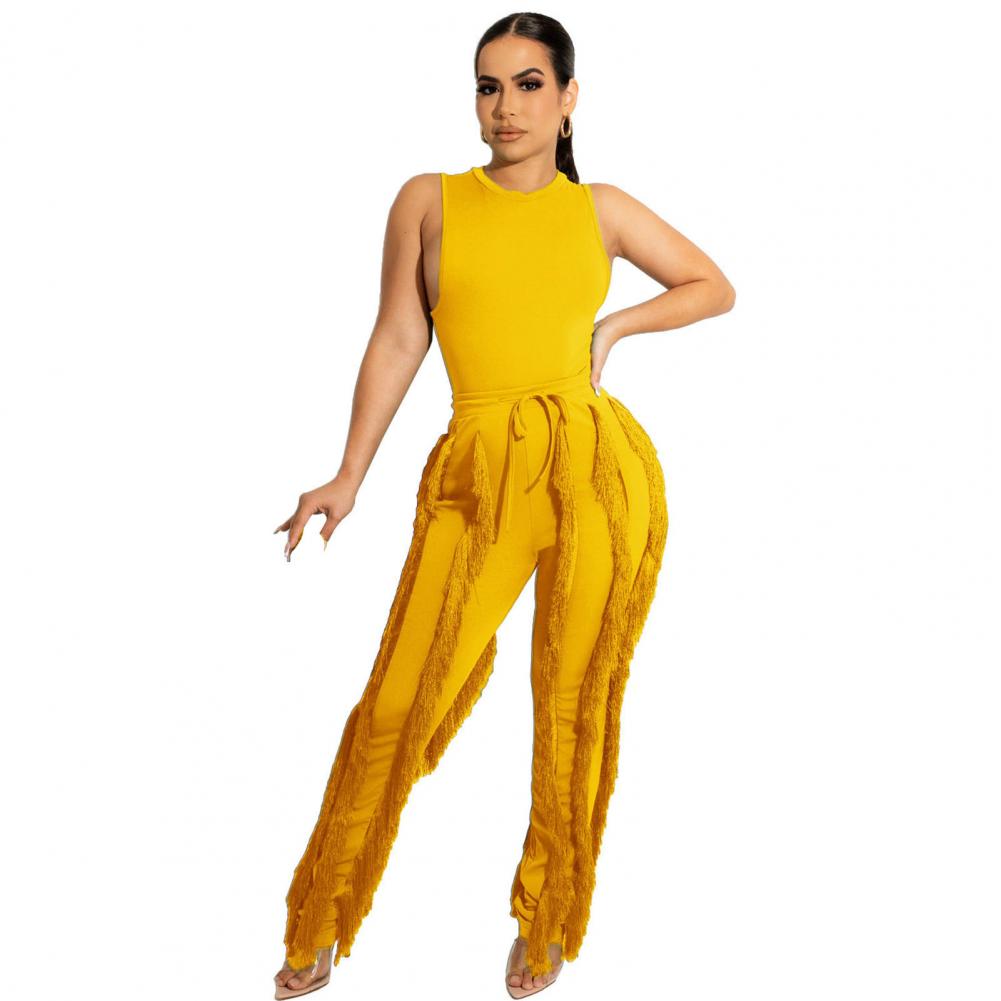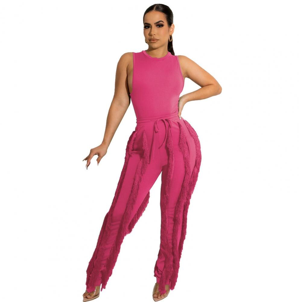 2 Pieces Women's Tracksuit Tank Top Tassel Side Straight PantsSPECIFICATIONS