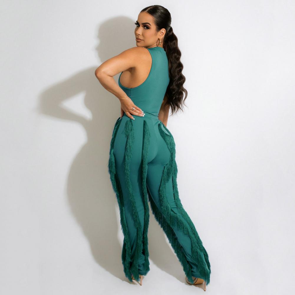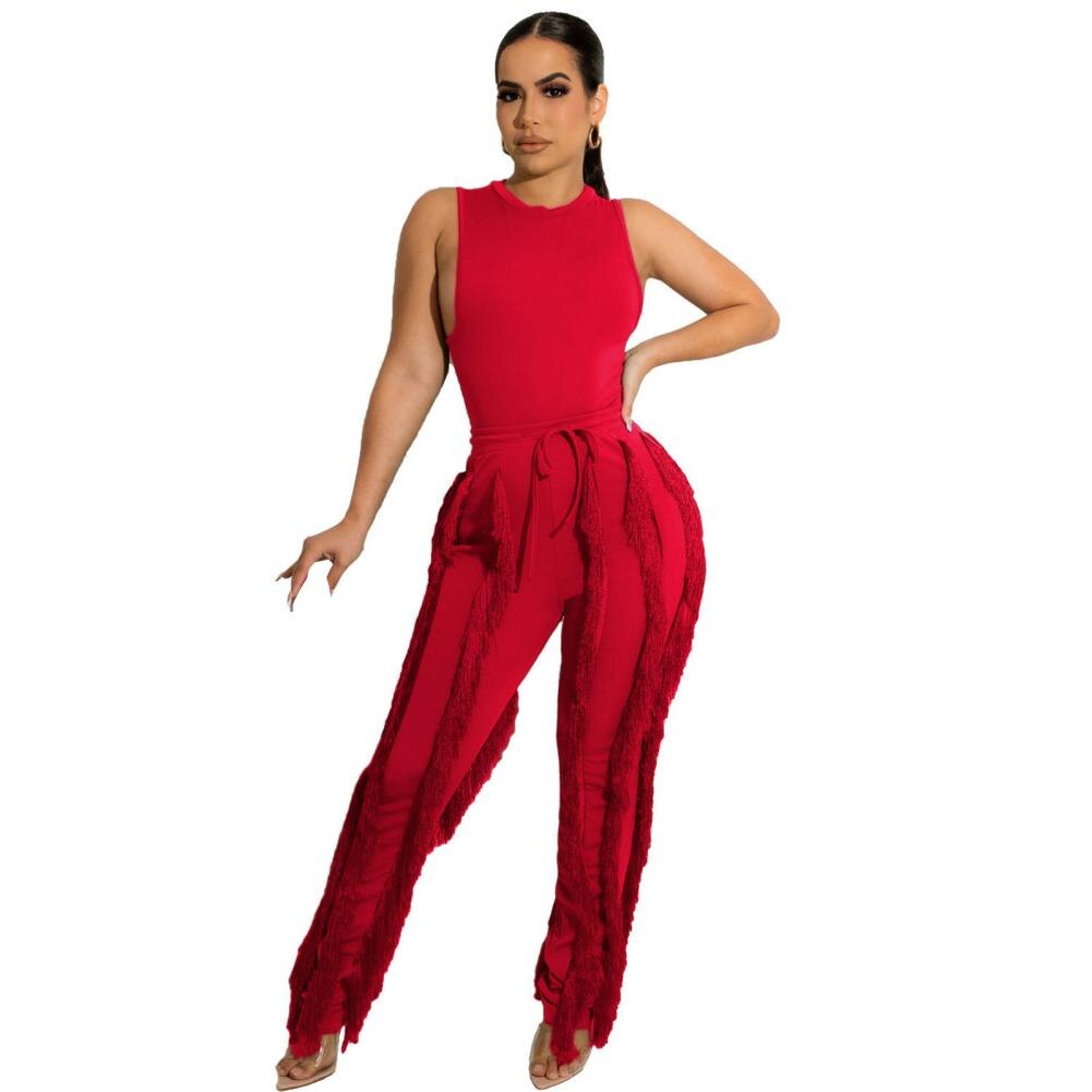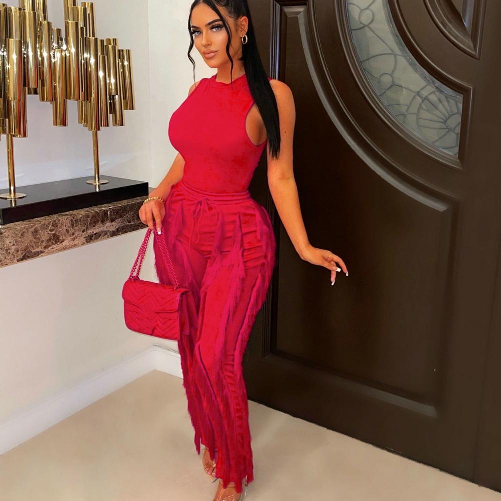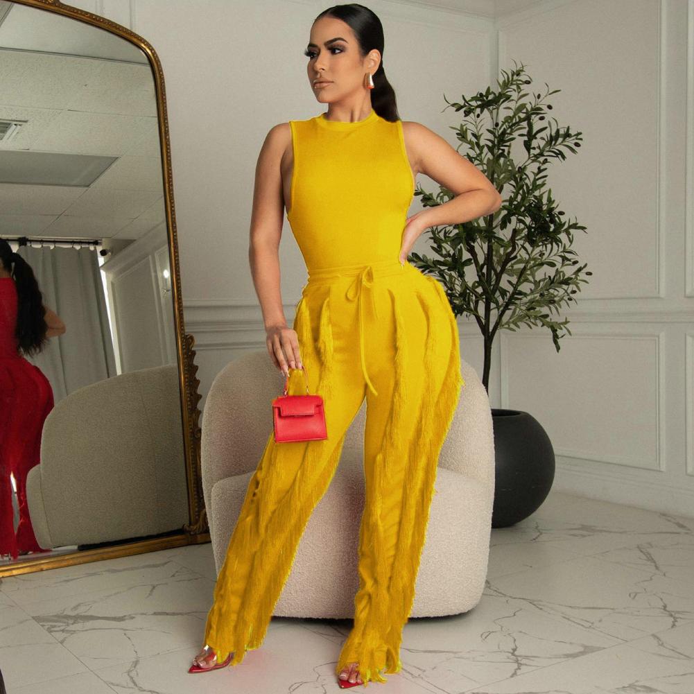 2 Pieces Women's Tracksuit Tank Top Tassel Side Straight PantsSPECIFICATIONS