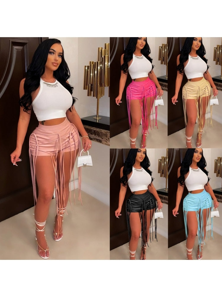 2022 Sexy Womens Wetlook Tassel Mini Shorts PU Leather High Waist Lace-up Back Booty ShortsSPECIFICATIONS