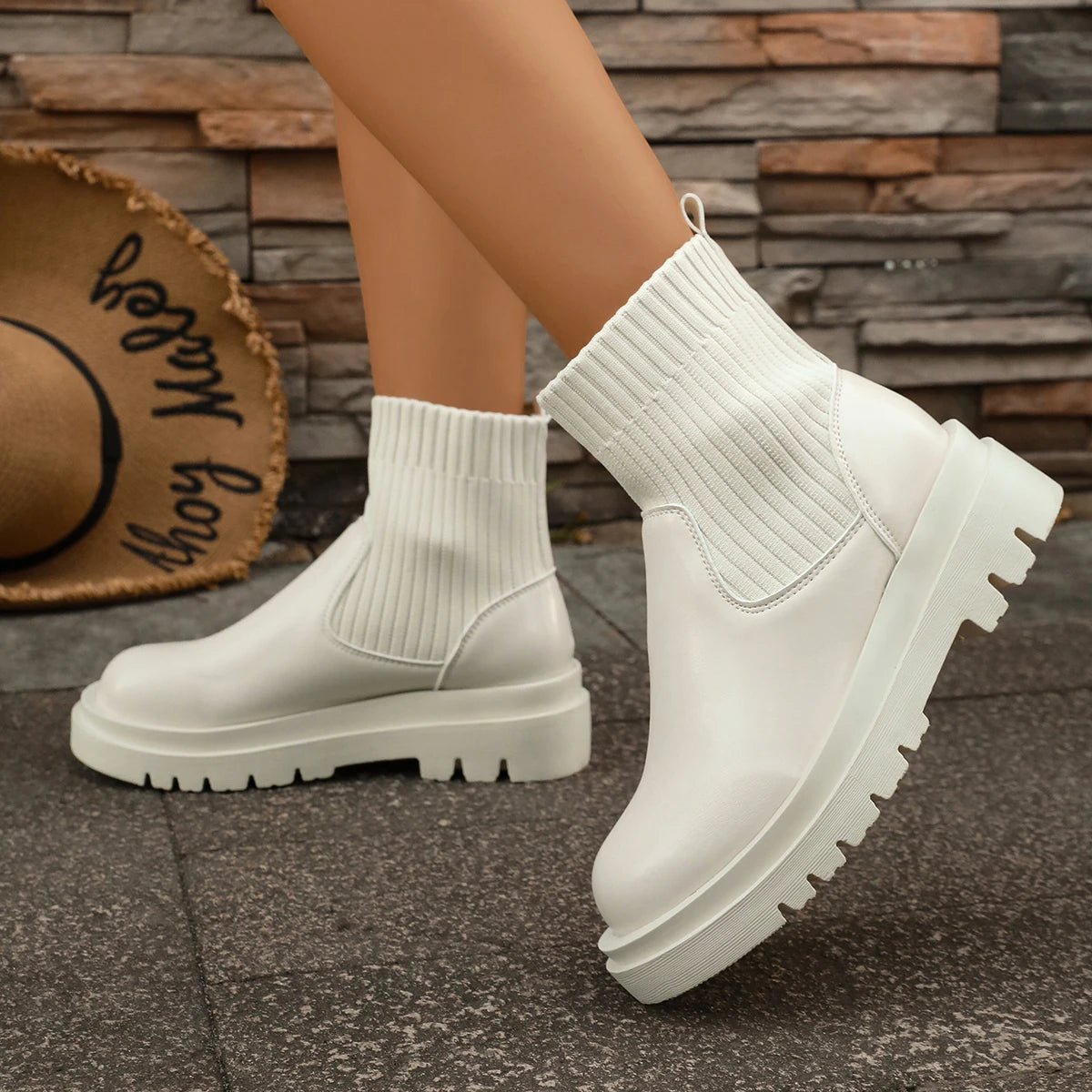 2025 Autumn Winter Fashion Women Chelsea Boots Leather High Heels Boots Platform Shoes Ladies Knitted Sexy Ankle Boots