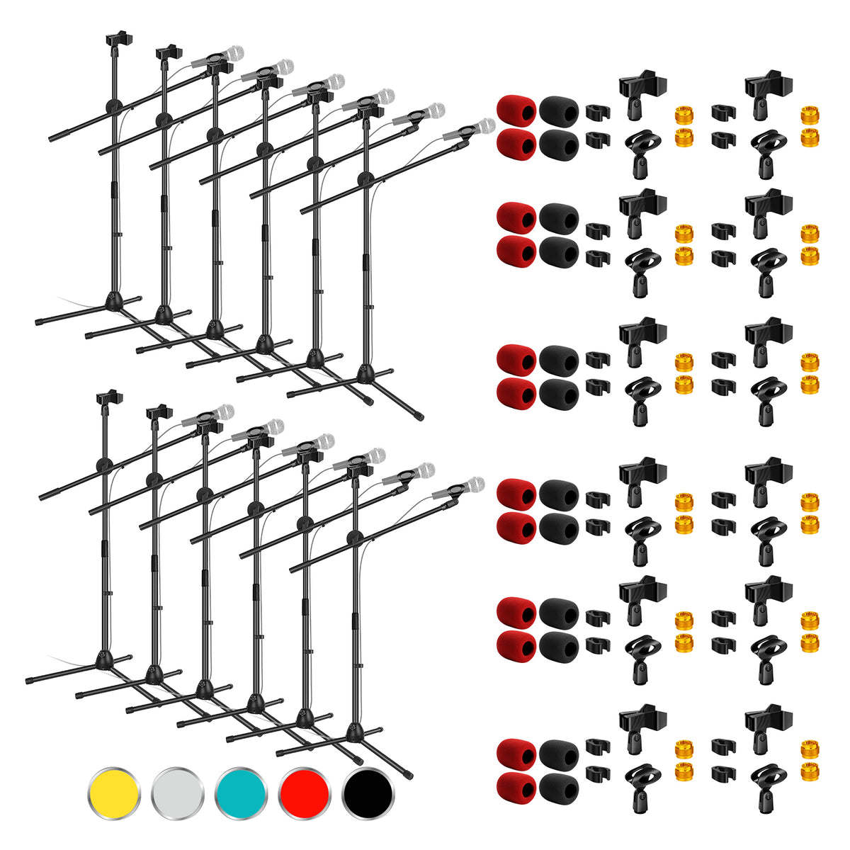 | The 5 Core mic stand has adjustable height. The minimum height is 31 inches, and the maximum height is 76 inches. The 24 inch boom arm rotates 360 degrees for easy positioning, it can be lowered to 2 inches. The tripod leg design features sturdy metal legs with rubber caps, making it stable even on uneven surfaces. The heavy duty mike stand has a strong metal build quality and reinforced clutch, holding up to 3.5 lbs. This floor mic stand comes with 2 mic holders and 3/8" to 5/8" screw adapters, fitting most mics and accessories. Portable soporte de micrófono, collapsible design, and can be assembled in minutes. Perfect for anyone who needs a reliable, versatile mic stand. |