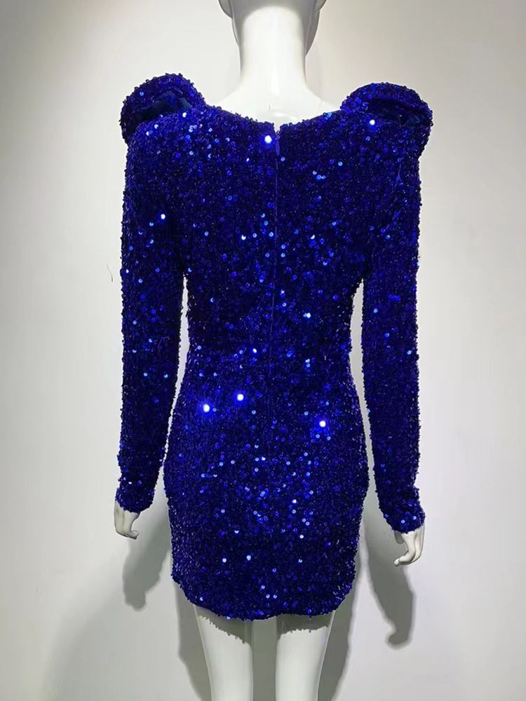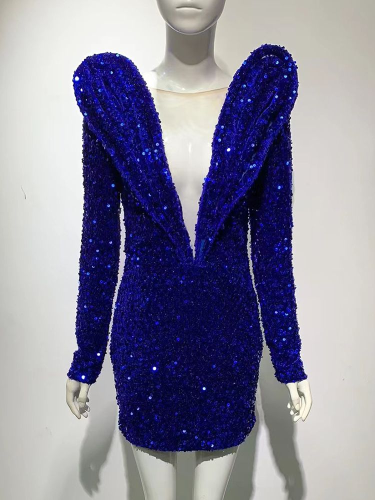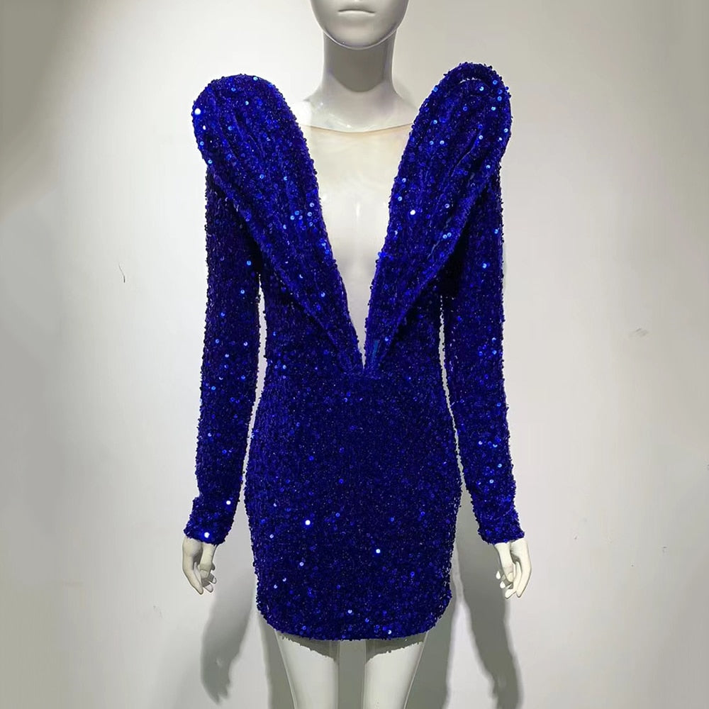 2022 Sexy Fashion High Quality Women's Blue Sequins Luxury Sexy V-neck Long Sleeve DressSPECIFICATIONS