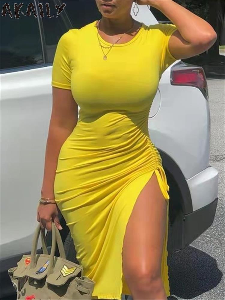 Sexy Black Bodycon Side Slit Drseees Woman Outfits 2023 Summer Sexy White Sheath Midi DressesSPECIFICATIONS