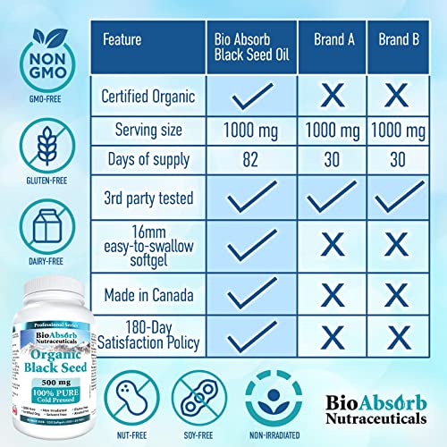 Bio Absorb Organic Black Seed Oil Capsules, 82-Day Supply, Cold Pressed Pure Black Cumin Seed Oil (Nigella Sativa) (330 softgels, 500mg)Brand: Bio Absorb Nutraceuticals