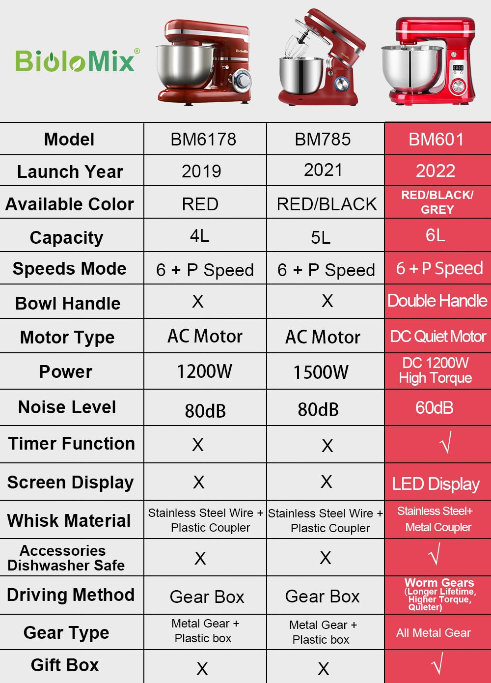 BioloMix 6L/5L Mixer Planetary 6-speed Kitchen Food Blender Stainless Steel Bowl Cake Mixer Egg WhiskSPECIFICATIONS