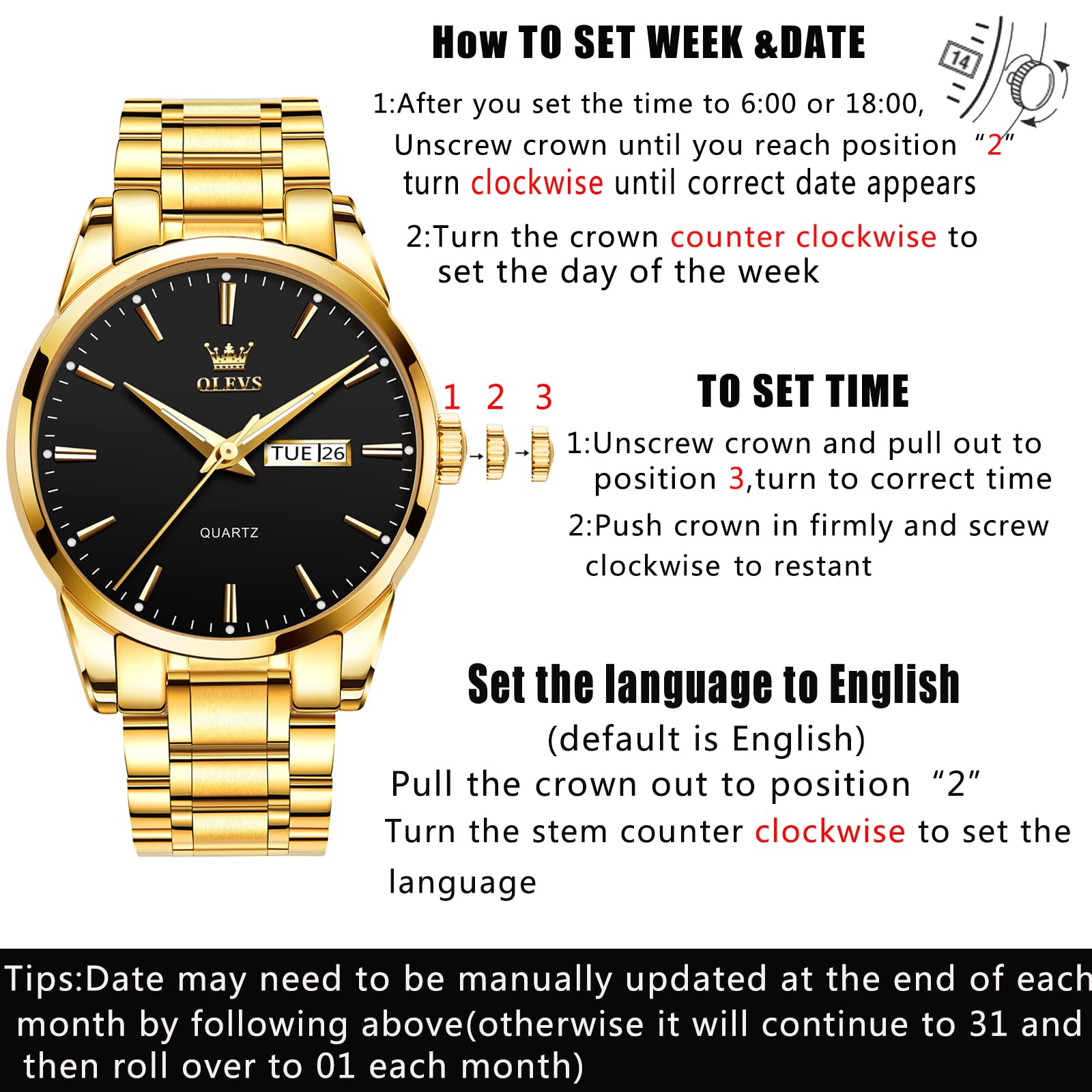Black Gold Watch for Men,Day and Date Men Watch,Men Gold Tone Watch,Fashion Gold Men Watches,Male Watch,Business Waterproof Men Watch,Luxury Gold Men Watches,Luminous Man Watch,Dress Watch for MenAuthor: XQIYI